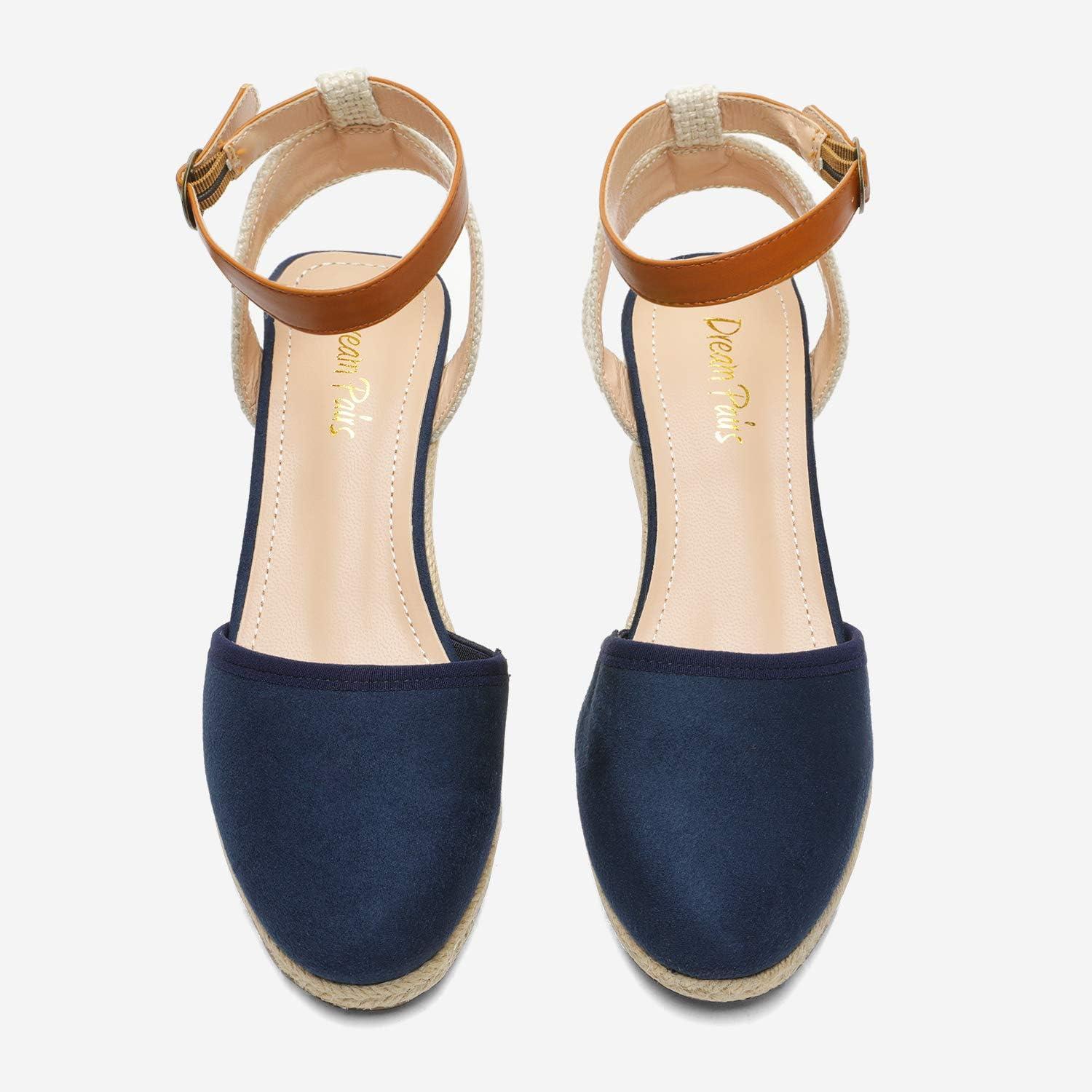 DREAM PAIRS Women’s Ankle Strap Closed Toe Espadrille Wedge Heels Sandals(Navy)