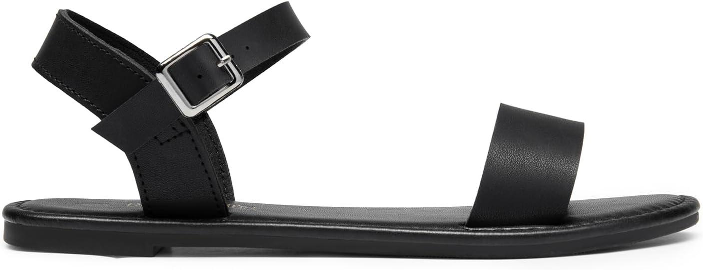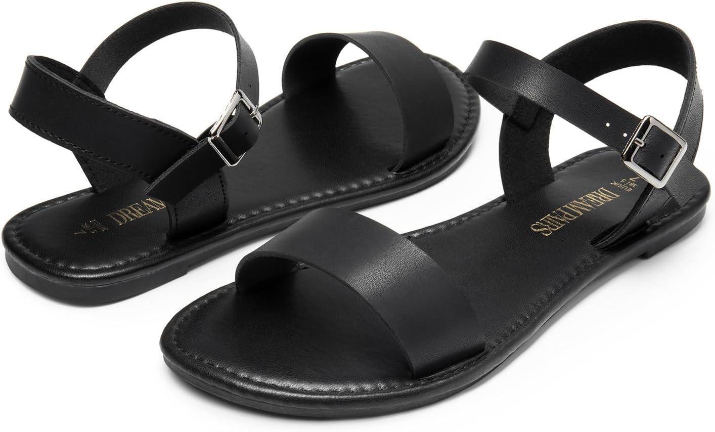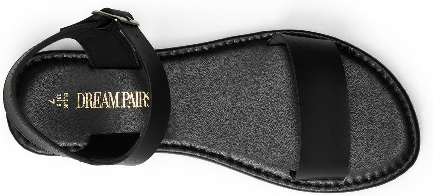 DREAM PAIRS Women’s Ankle Strap Flat Sandals Open Toes One Band Buckle Summer Dressy Sandals(Black Monochrome)