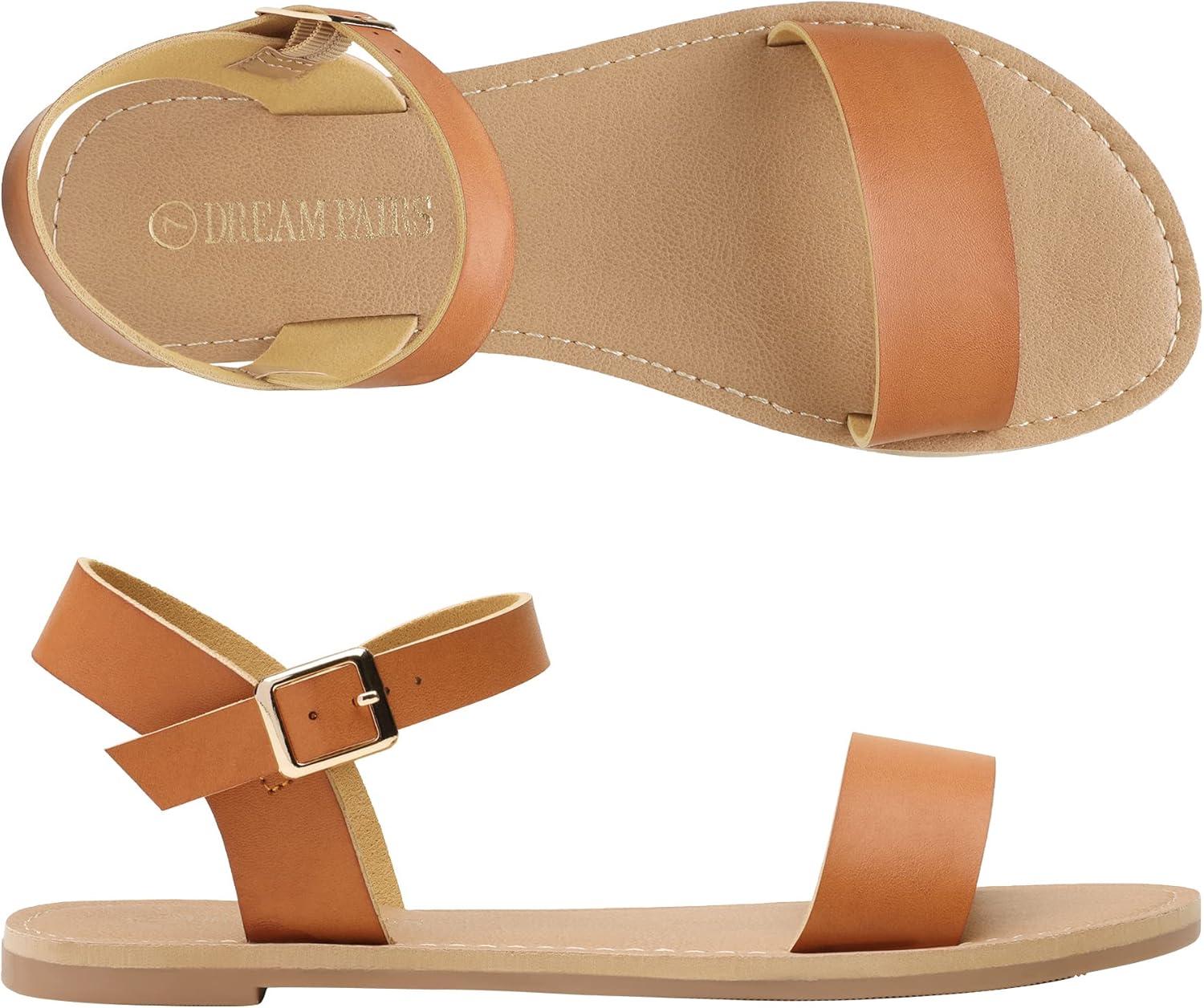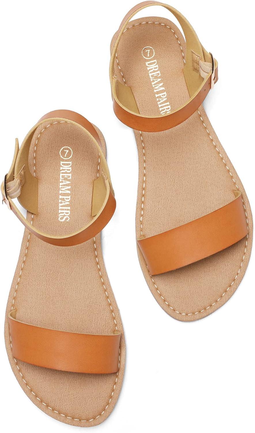 DREAM PAIRS Women’s Ankle Strap Flat Sandals Open Toes One Band Buckle Summer Dressy Sandals(Tan)