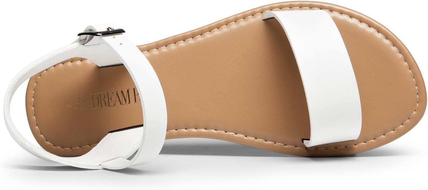 DREAM PAIRS Women’s Ankle Strap Flat Sandals Open Toes One Band Buckle Summer Dressy Sandals(White-pu)