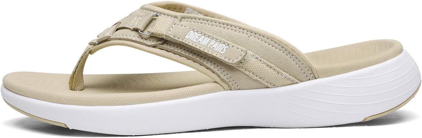 DREAM PAIRS Women’s Arch Support Flip Flops Comfortable Thong Sandals(Beige)
