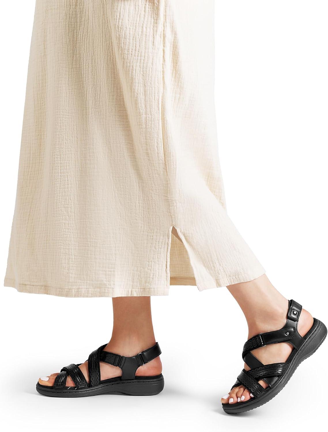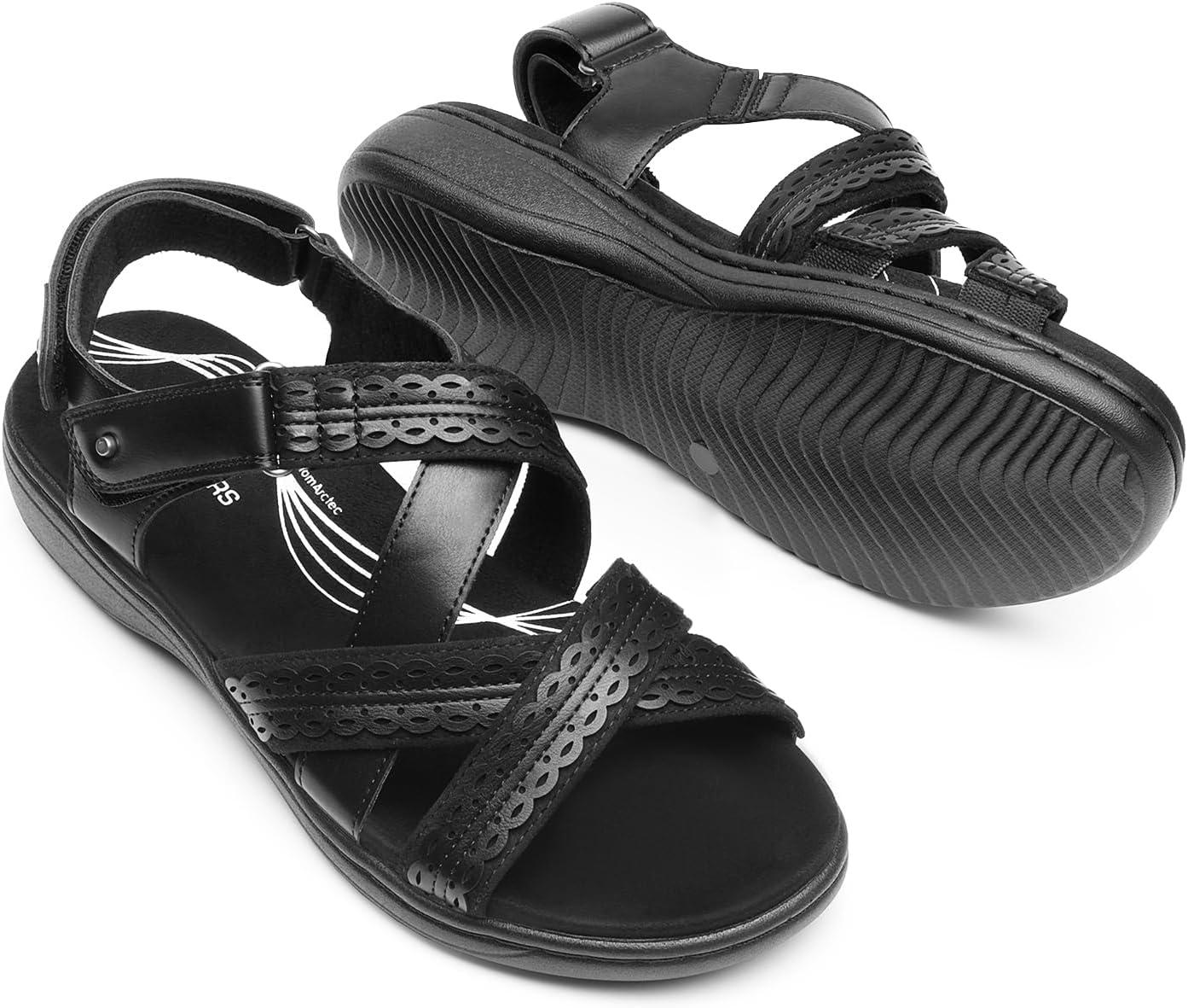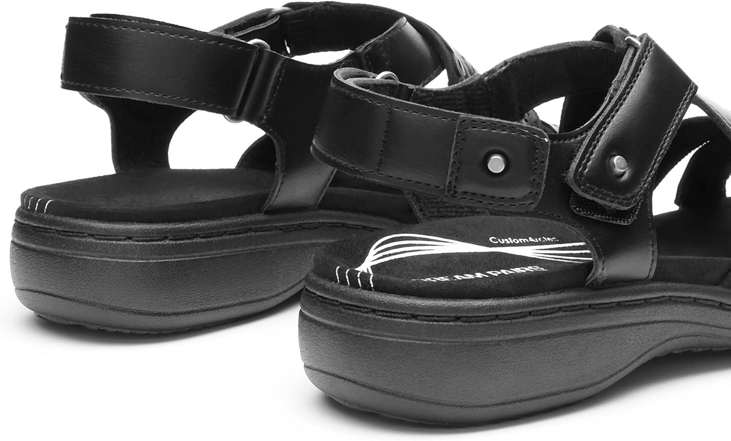 DREAM PAIRS Women’s Arch Support Sandals Comfortable Open Toe Dress Flats Walking Sandals For Summer(All Black)