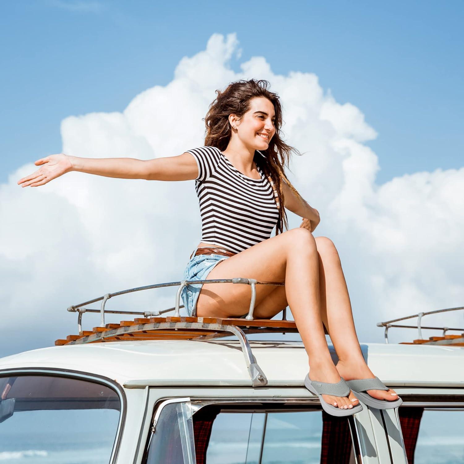 DREAM PAIRS Women’s Arch Support Soft Cushion Flip Flops Thong Sandals(Grey)
