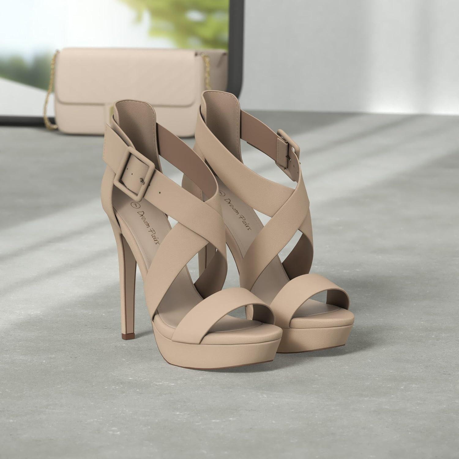 DREAM PAIRS Womens Baby Blue Suede Cross Strap Open Toe High Stilettos Party Pump Platform Heel Sandal, C-Nude/Suede – 8.5 (Charlotte)