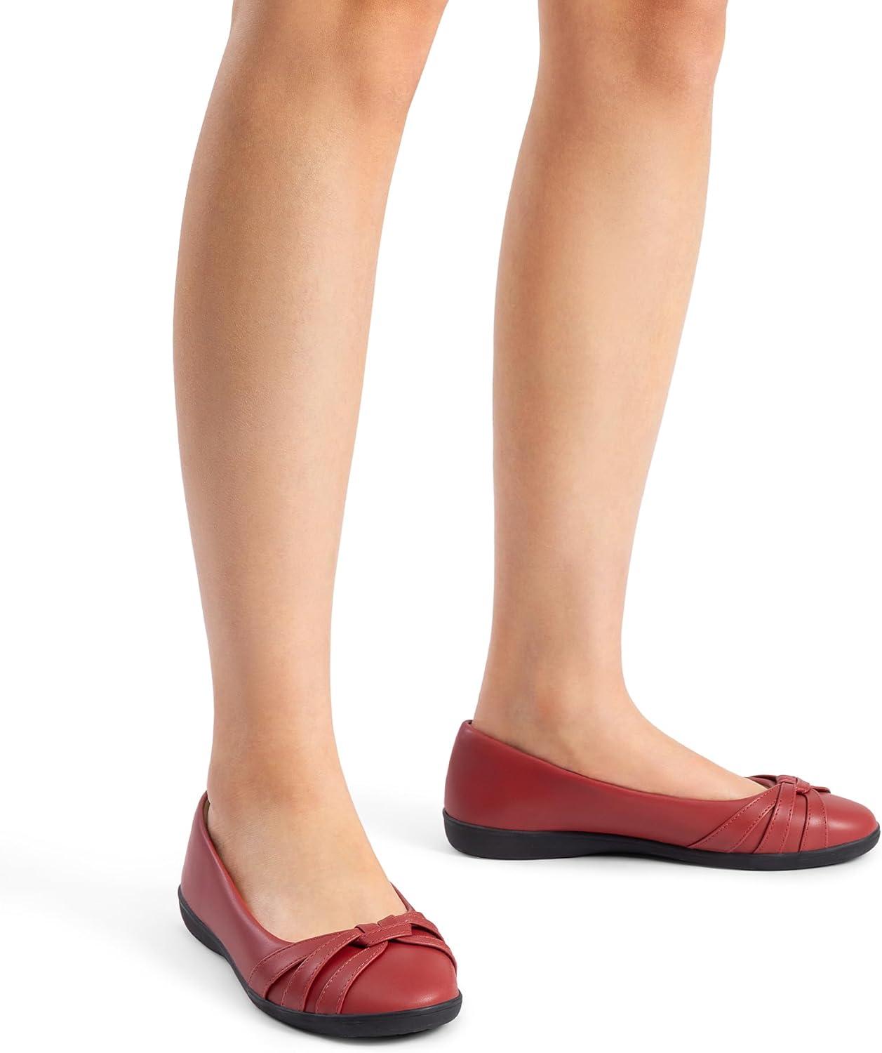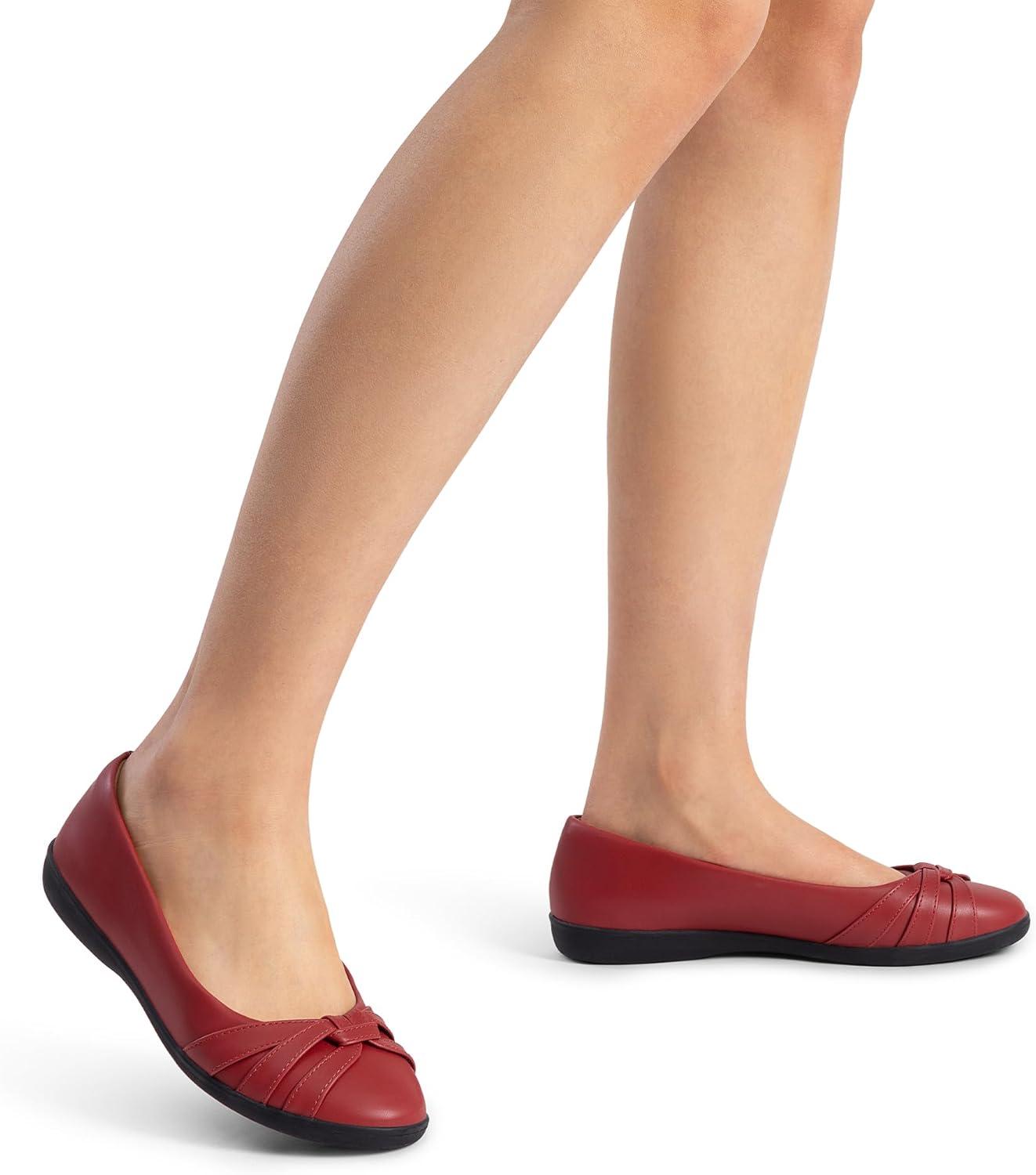 DREAM PAIRS Women’s Ballet Flats, Comfortable Round Toe Slip on Dressy Work Office Shoes with Arch Support(Red)