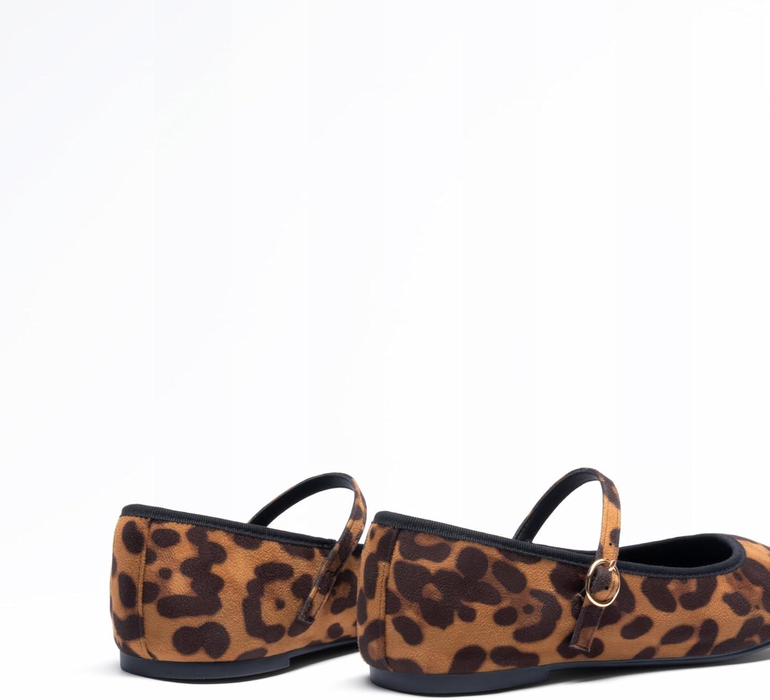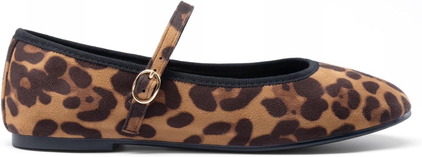 DREAM PAIRS Women’s Ballet Flats Mary Jane Shoes, Round Toe Comfortable Dressy Casual Slip-on Work Daily Soft Flat Shoes(Leopard)