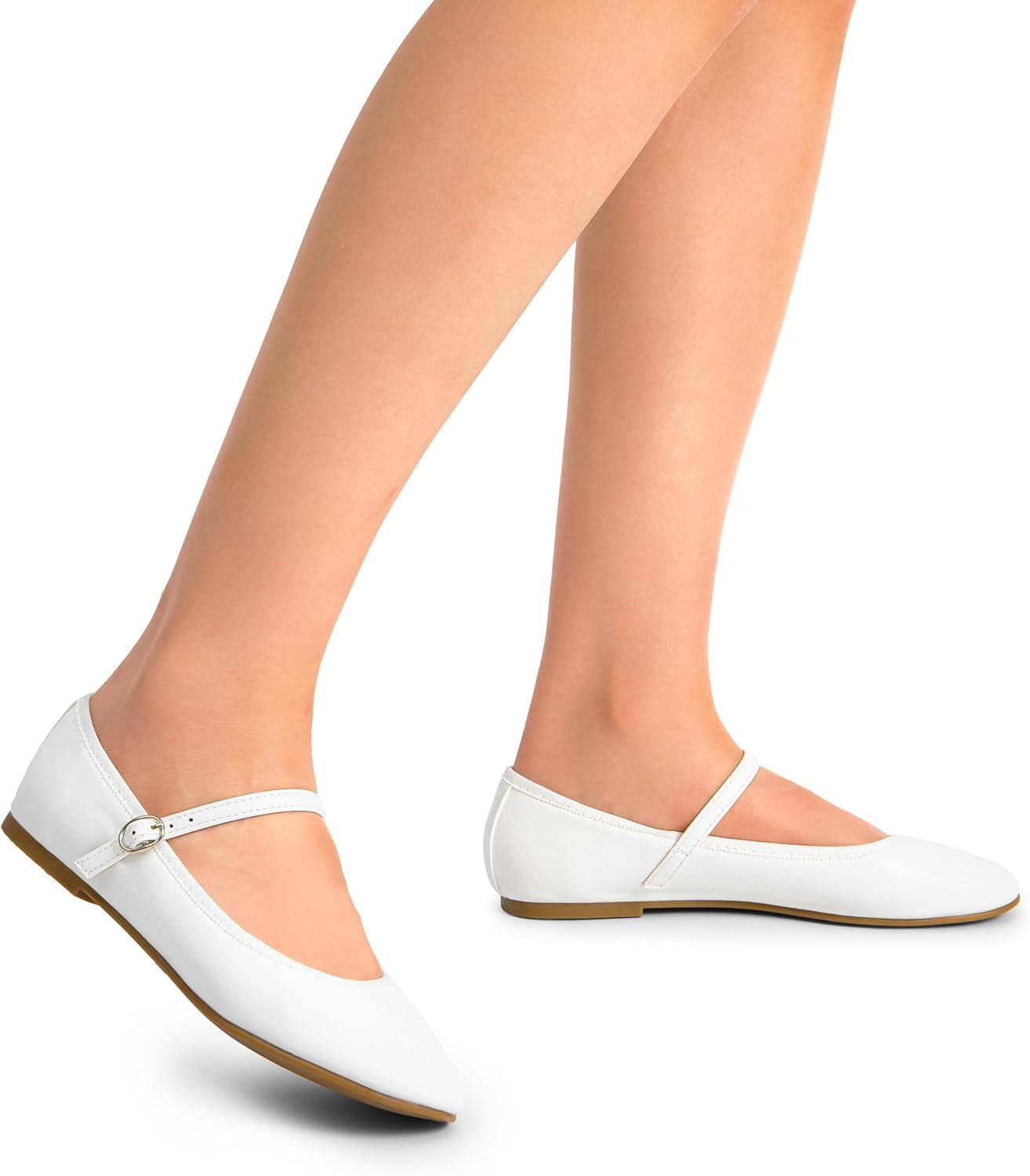 DREAM PAIRS Women’s Ballet Flats Mary Jane Shoes, Round Toe Comfortable Dressy Casual Slip-on Work Daily Soft Flat Shoes(White-pu)