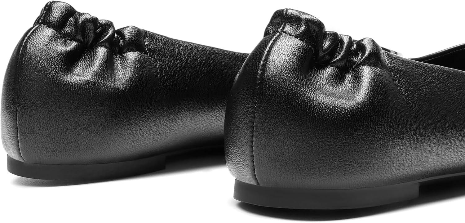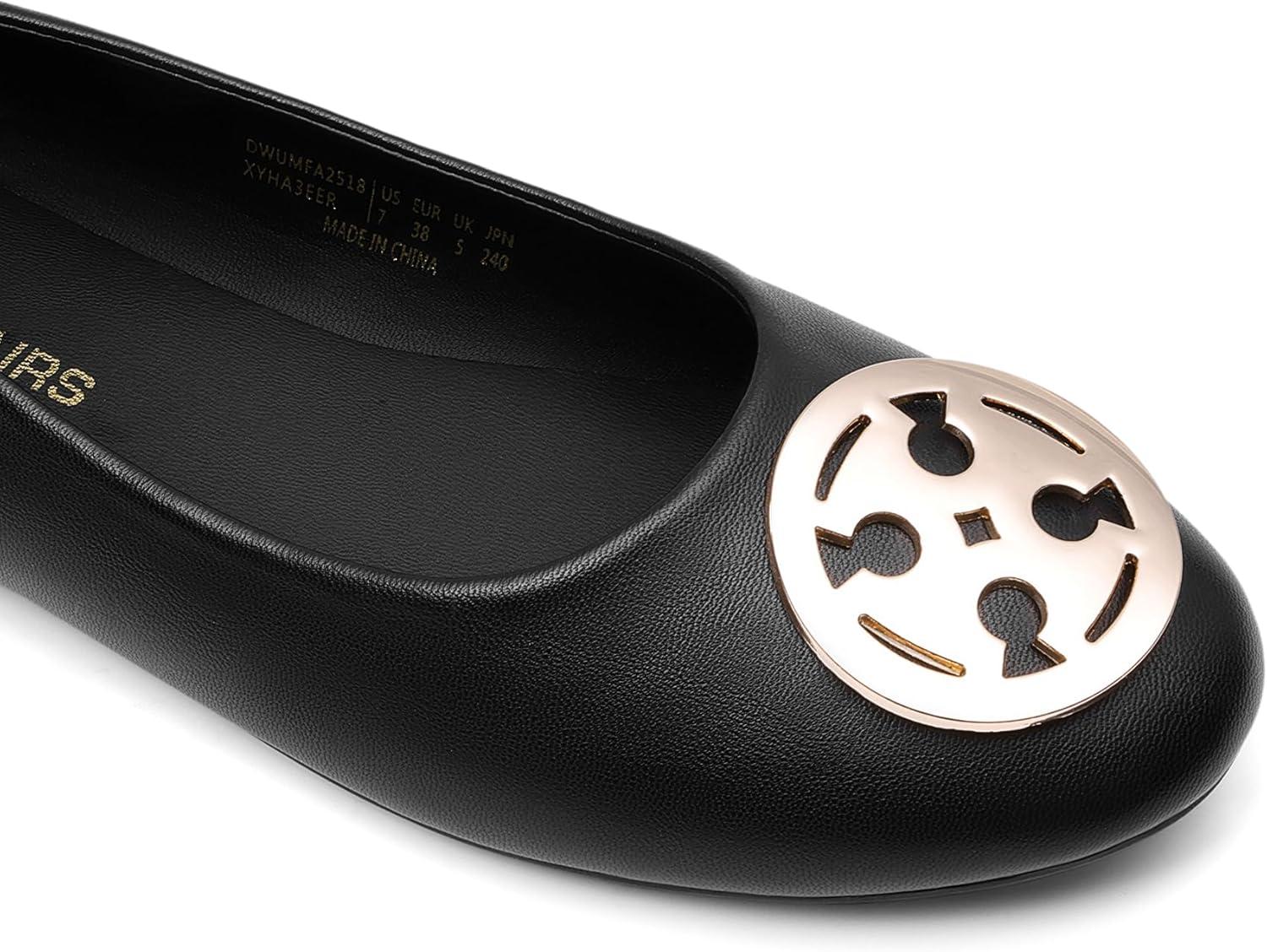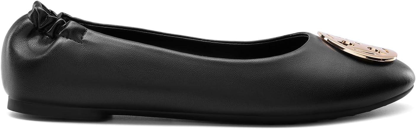 These women's ballet flats are simple and classic, featuring a round toe, a slip-on style, a metal accent, and a flat sole. These women's fashion flats are great for any occasion, wear them for work on busy mornings or leisure days.