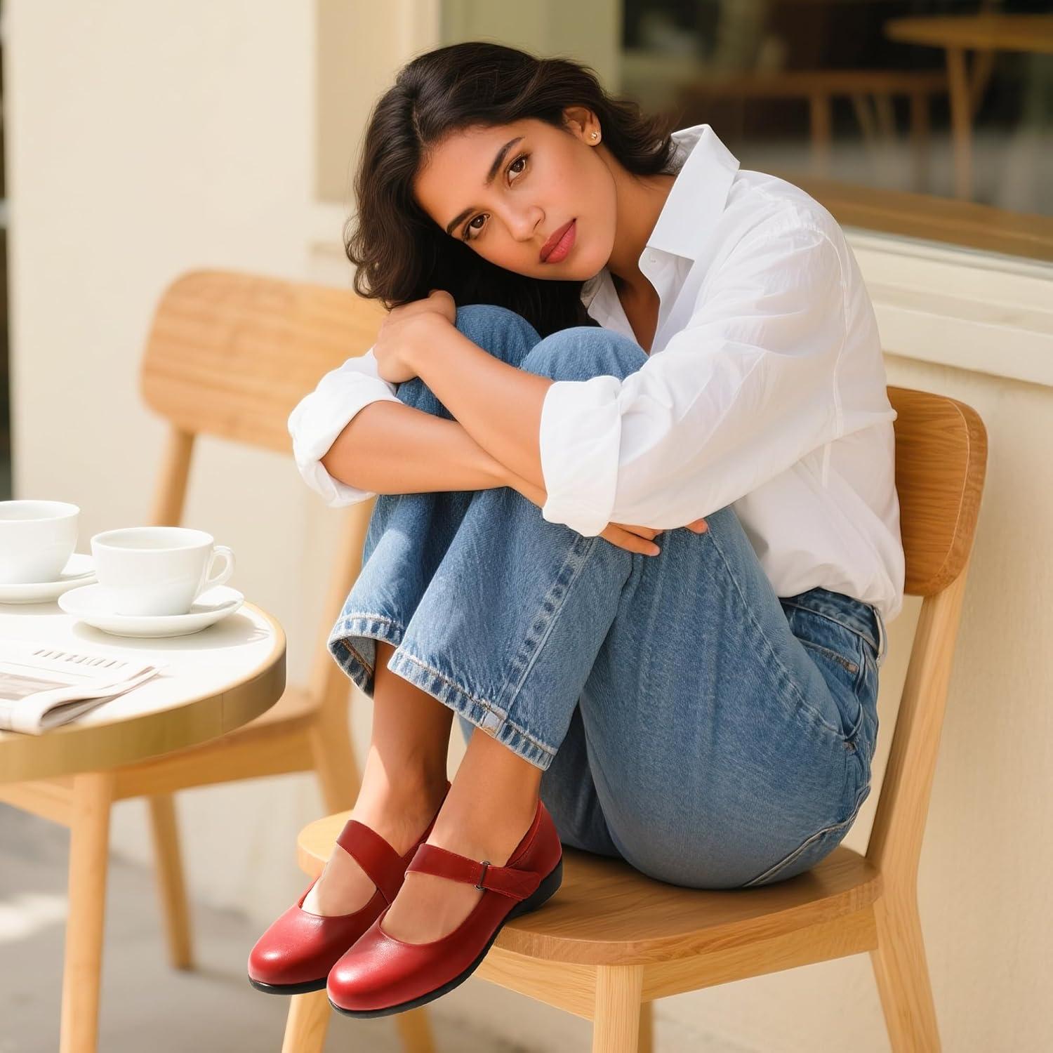 DREAM PAIRS Womens Ballet Mary Jane Flats, Comfortable Business Office Dress Shoes for Women Dressy and Work with Ankle Strap(Red)