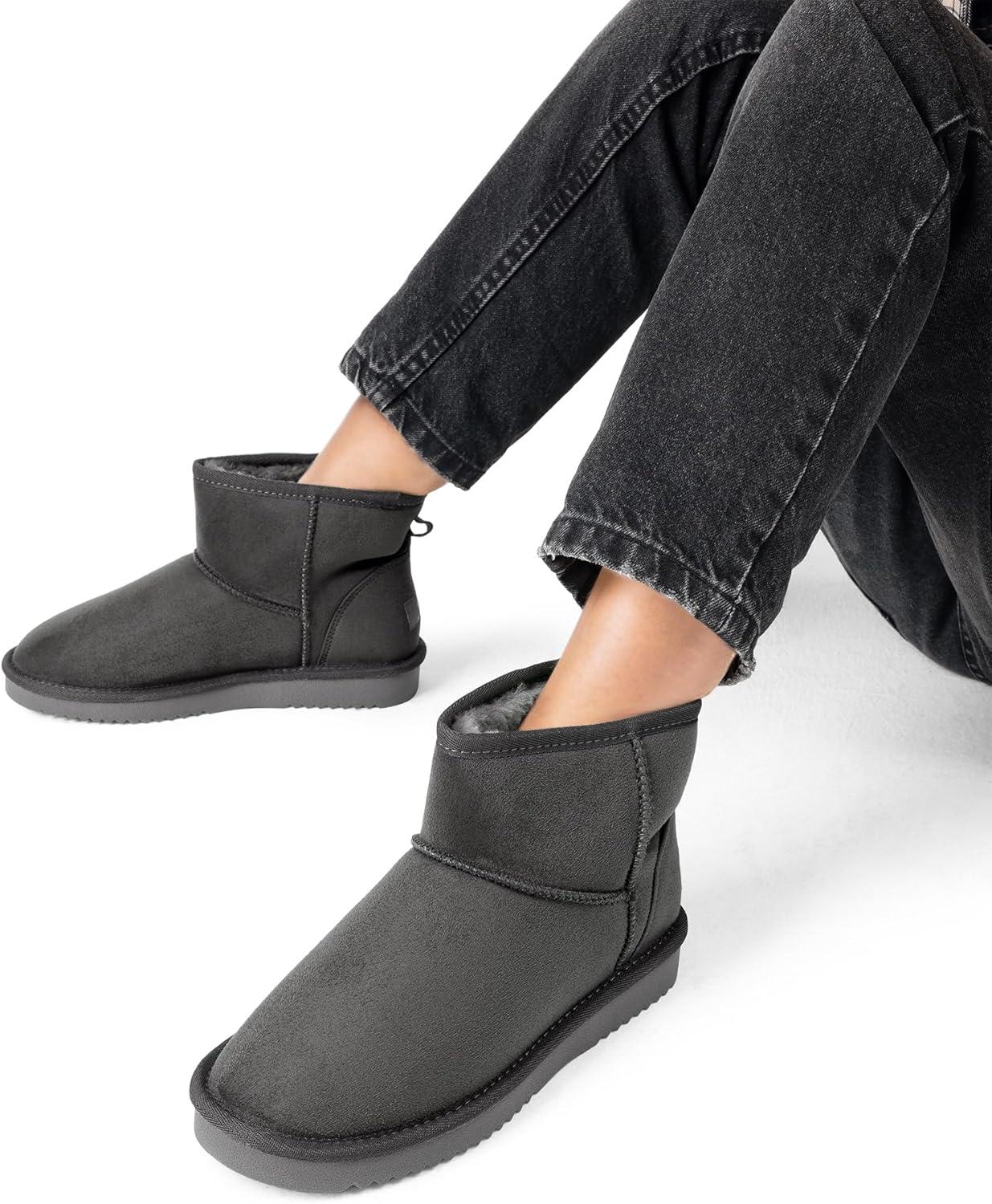 DREAM PAIRS Women’s Black Brown Tan Grey Winter Snow Boots Classic Faux Fur Lined Slip On Ankle Boots