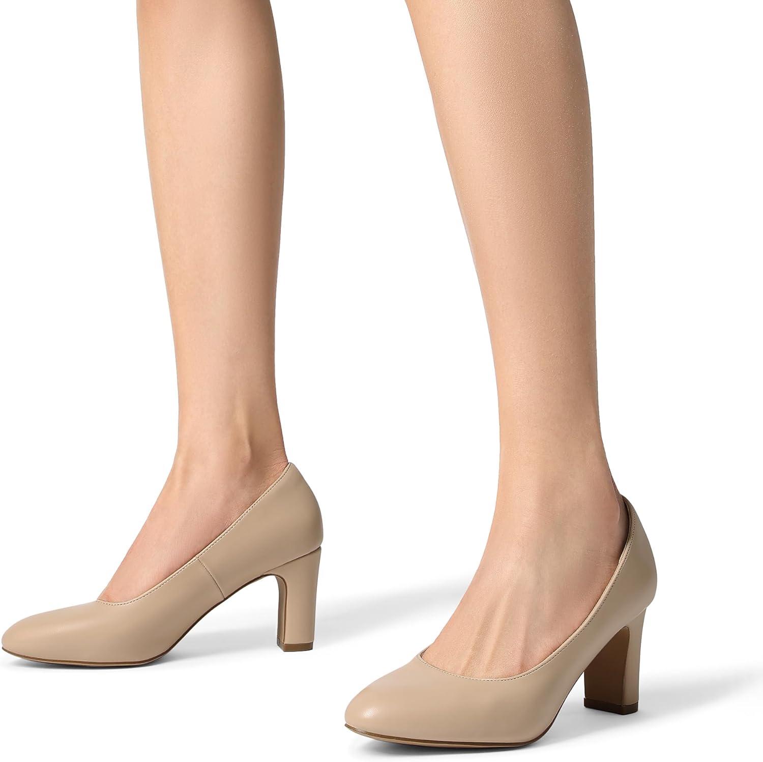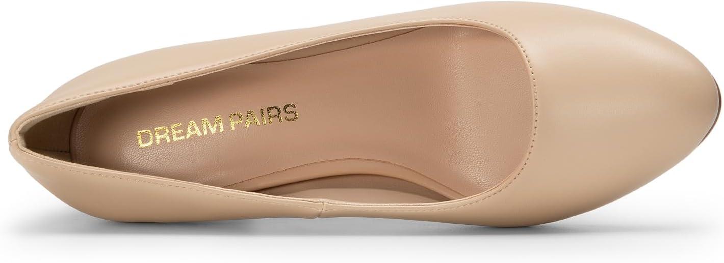 DREAM PAIRS Women’s Block Heels Closed Toe High Chunky Rounded Toe Pumps Comfortable Slip On Work Shoes(Nude)