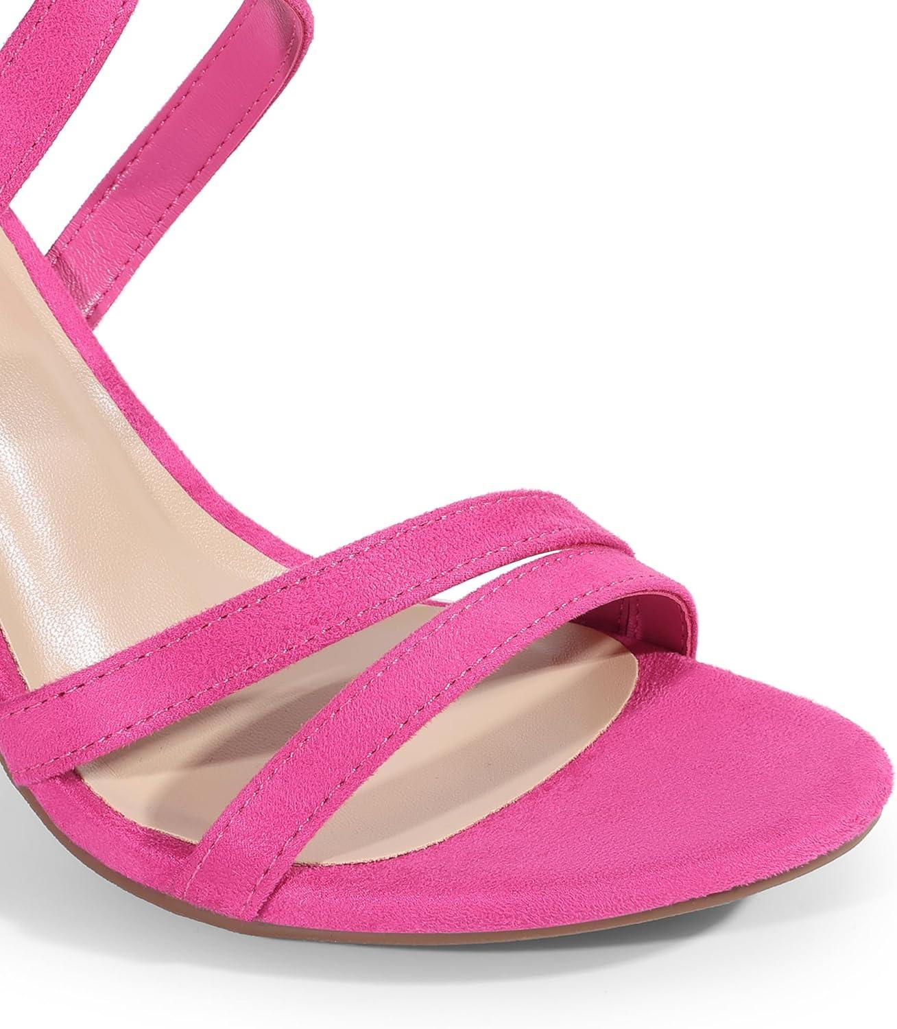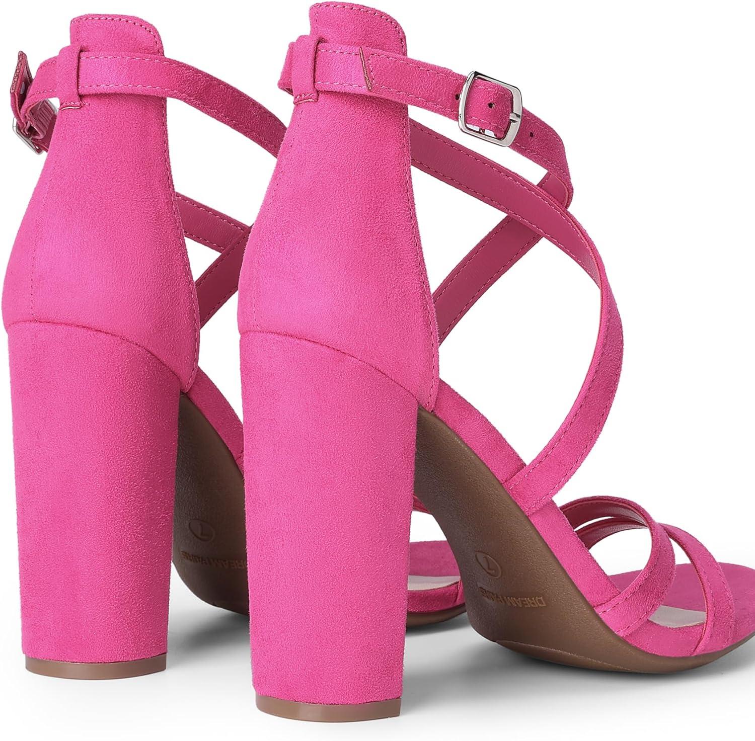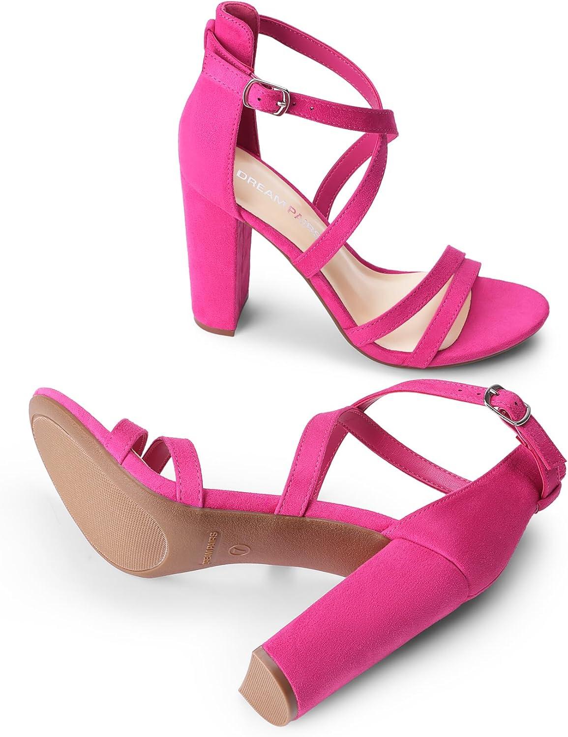 DREAM PAIRS Womens Chunky Heels 4 inch High Multi Strap Soft Comfort Block Heeled Sandals for Prom Dancing Wedding(Hot Pink)