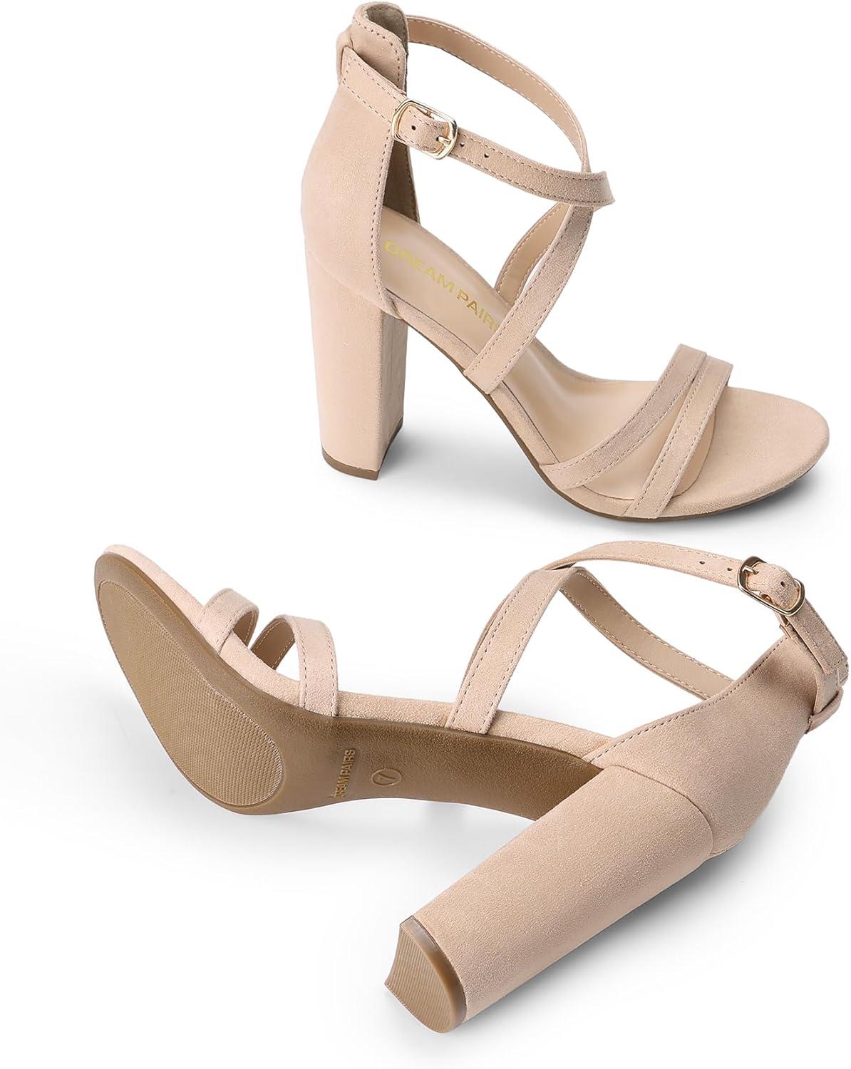 DREAM PAIRS Womens Chunky Heels 4 inch High Multi Strap Soft Comfort Block Heeled Sandals for Prom Dancing Wedding(Nude)