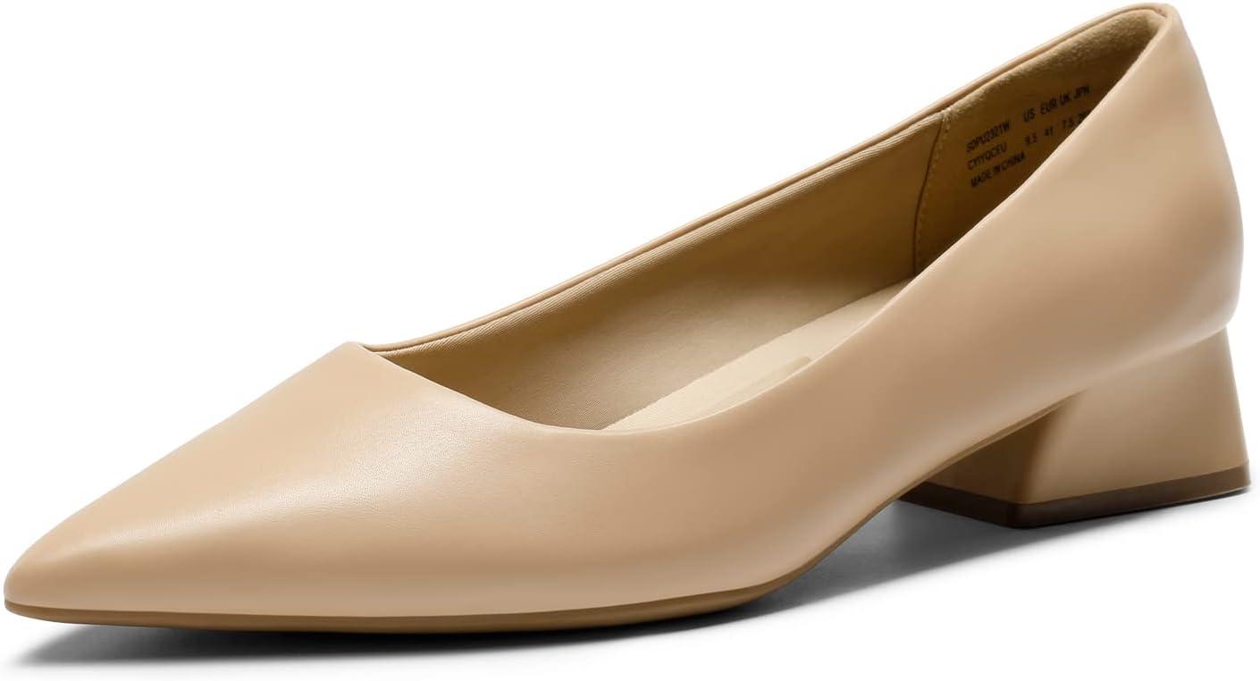 DREAM PAIRS Women’s Chunky Heels Closed Toe Low Block Work Shoes Pointed Toe Dress Comfortable Wedding Pumps(Nude-pu)