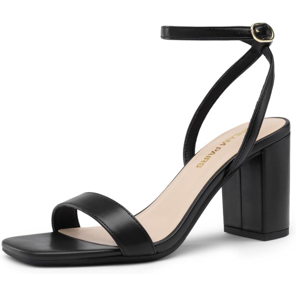 DREAM PAIRS Women’s Chunky Heels Square Open Toe Ankle Buckle Strappy Block Heeled Sandals for Party Wedding Daily(Black-pu)