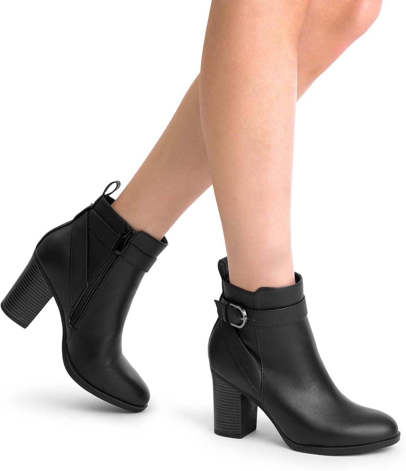 DREAM PAIRS Women’s Chunky High Heel Ankle Boots Round Toe Fall Short Booties Shoes(Black-pu)