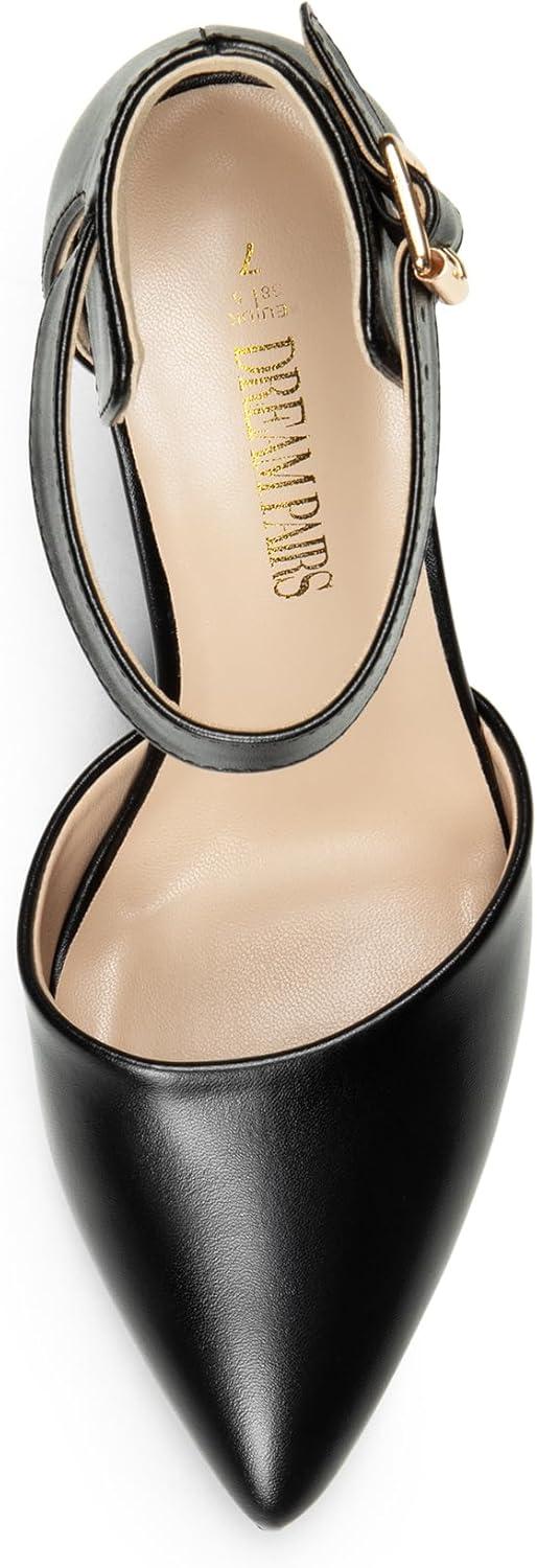 DREAM PAIRS Women’s Chunky High Heels Dress Pumps Closed Pointed Toe Block Ankle Strap Shoes for Wedding Party(Black-pu)