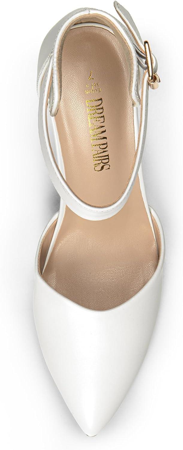 DREAM PAIRS Women’s Chunky High Heels Dress Pumps Closed Pointed Toe Block Ankle Strap Shoes for Wedding Party(White-pu)