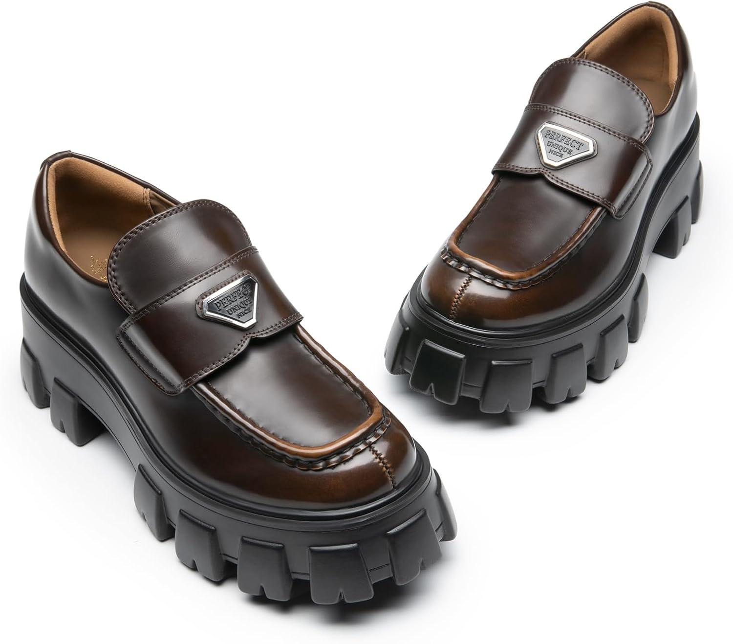 DREAM PAIRS Women’s Chunky Loafers Platform Comfortable Slip-On Dressy Business Casual Fashion Outfit Loafer Shoes(Brown)