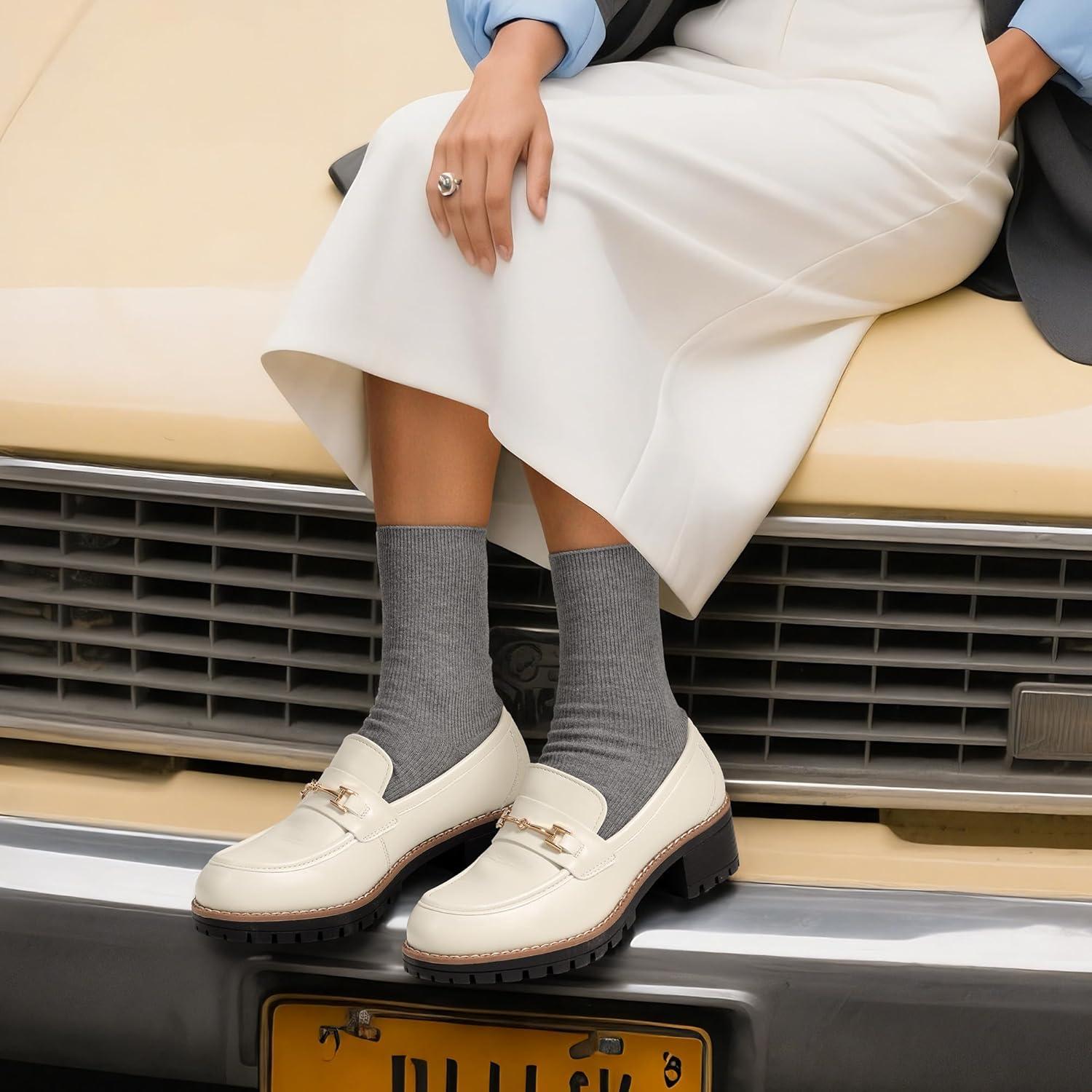 DREAM PAIRS Women’s Chunky Loafers, Platform Comfortable Slip-On Dressy Business Casual Shoes(Beige-pu)