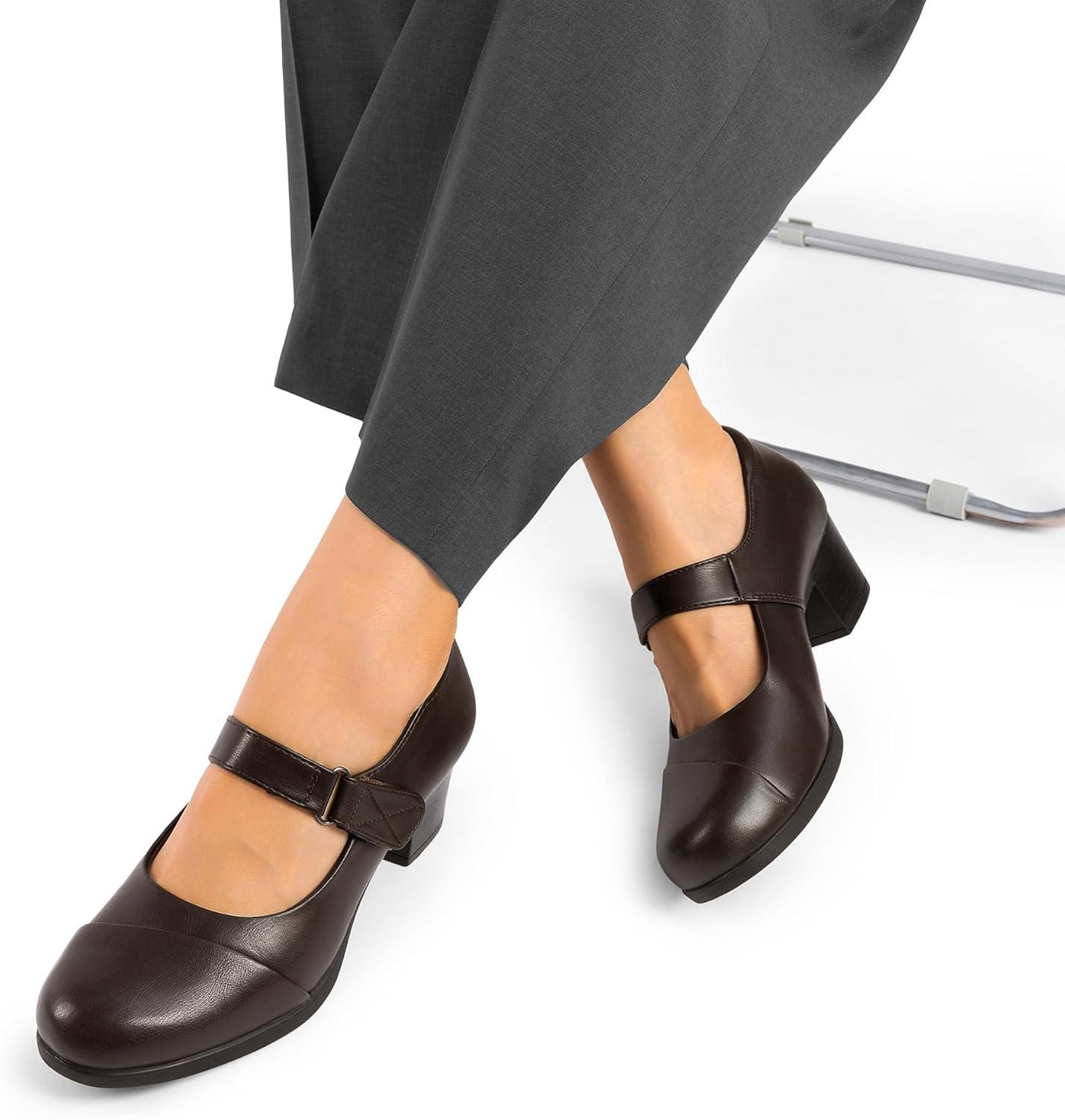 DREAM PAIRS Women’s Chunky Low Block Closed Toe Heels Mary Janes Pumps Comfortable Round Toe Dress Work Wedding Shoes(Brown)
