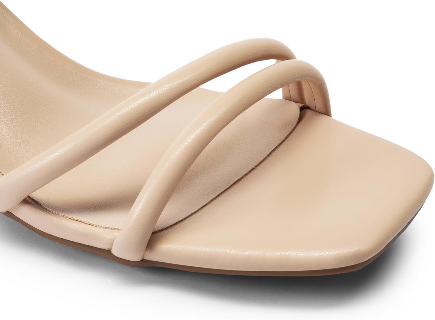 DREAM PAIRS Women’s Chunky Strappy Heels Square Open Toe Ankle Buckle Low Heels Sandals for Daily Wedding Party Dress(Nude-pu)