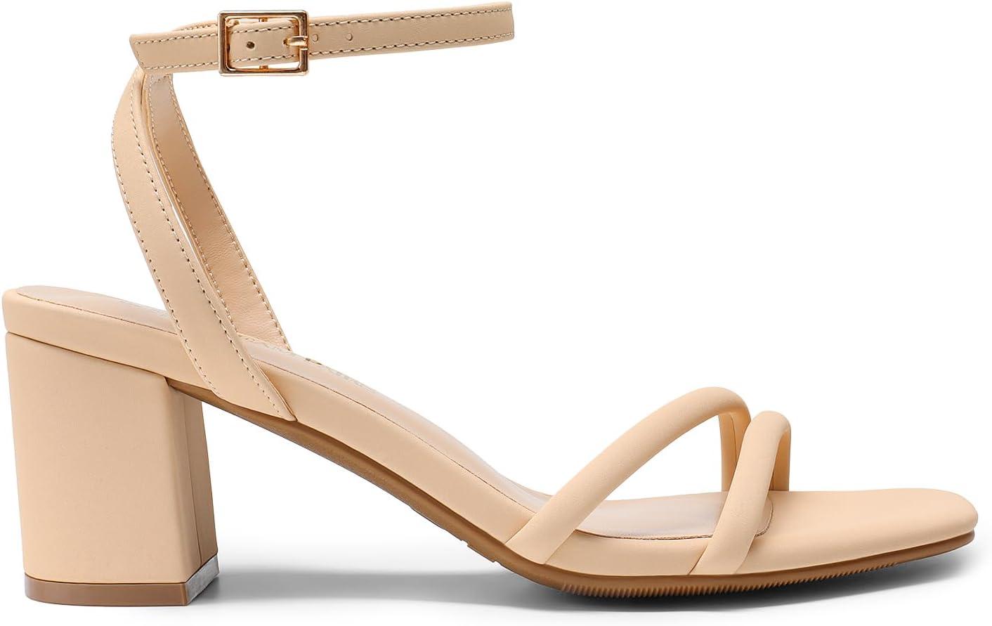 DREAM PAIRS Women’s Chunky Strappy Heels Square Open Toe Ankle Buckle Low Heels Sandals for Daily Wedding Party Dress(Nude)