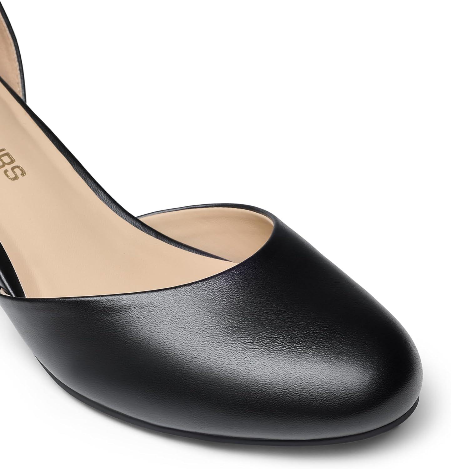 DREAM PAIRS Women’s Closed Round Toe Low Block Heels Ankle Strap Chunky Heel Pumps Dress Wedding Office Party Shoes(Black-pu)