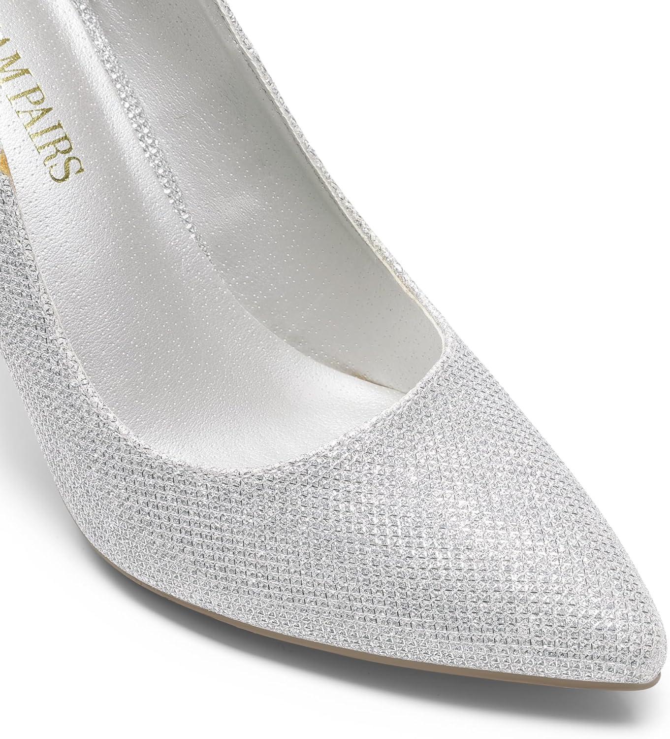 DREAM PAIRS Women’s Closed Toe High Heels Dress Pointed Toe Wedding Pump Shoes(Silver/Glitter)