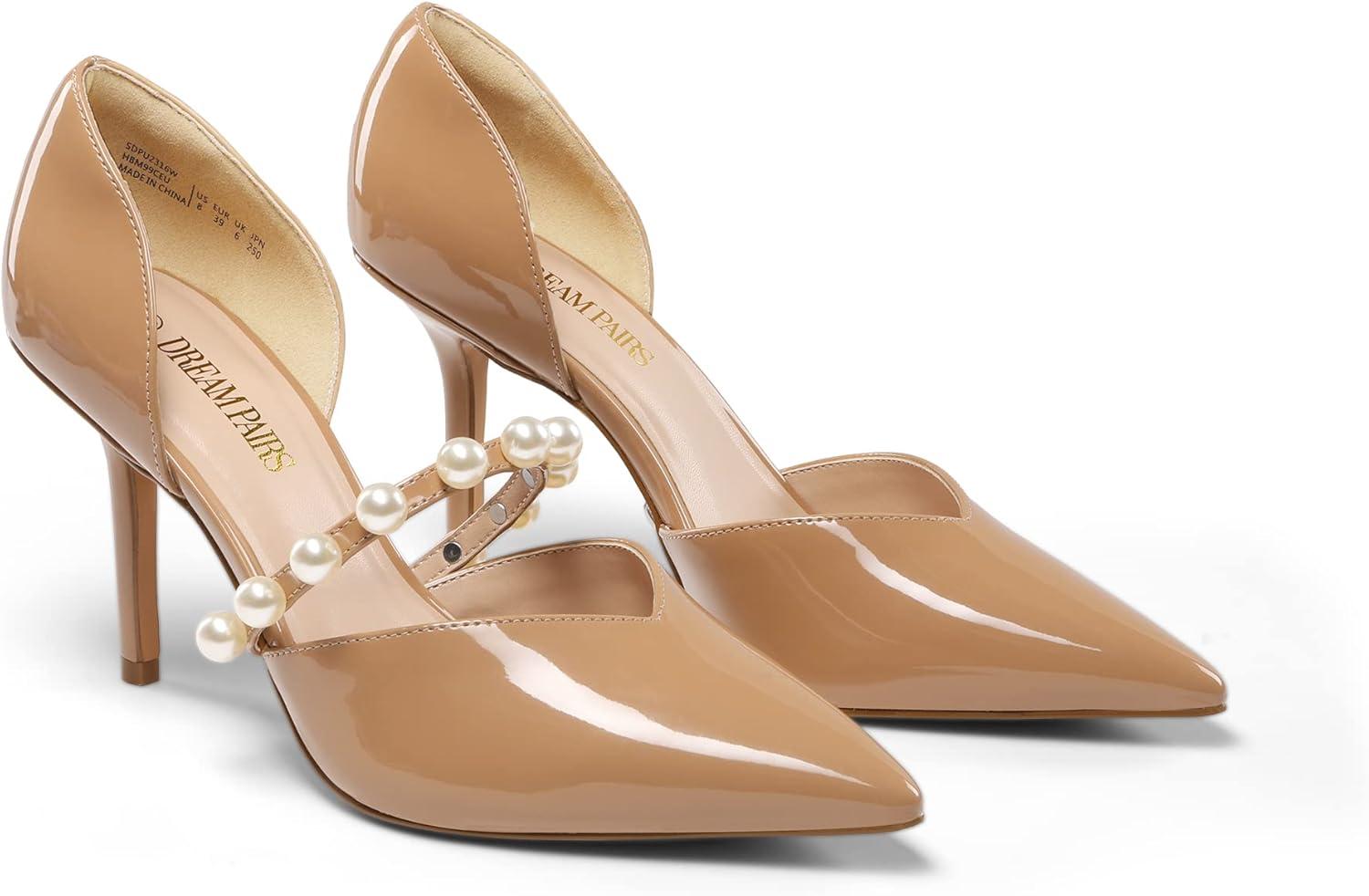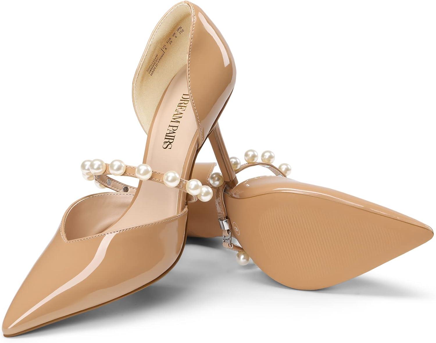 DREAM PAIRS Women’s Closed Toe High Heels Stiletto Pointed Toe Strappy Pearl Elegant D’Orsay Dress Wedding Party Pumps Shoes(Nude)