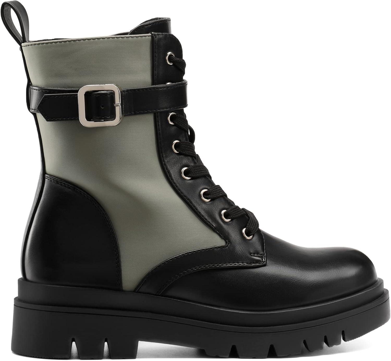 DREAM PAIRS Women’s Combat Platform Boots Lace Up Lug Sole Buckle Ankle Booties Shoes(Black/Green)