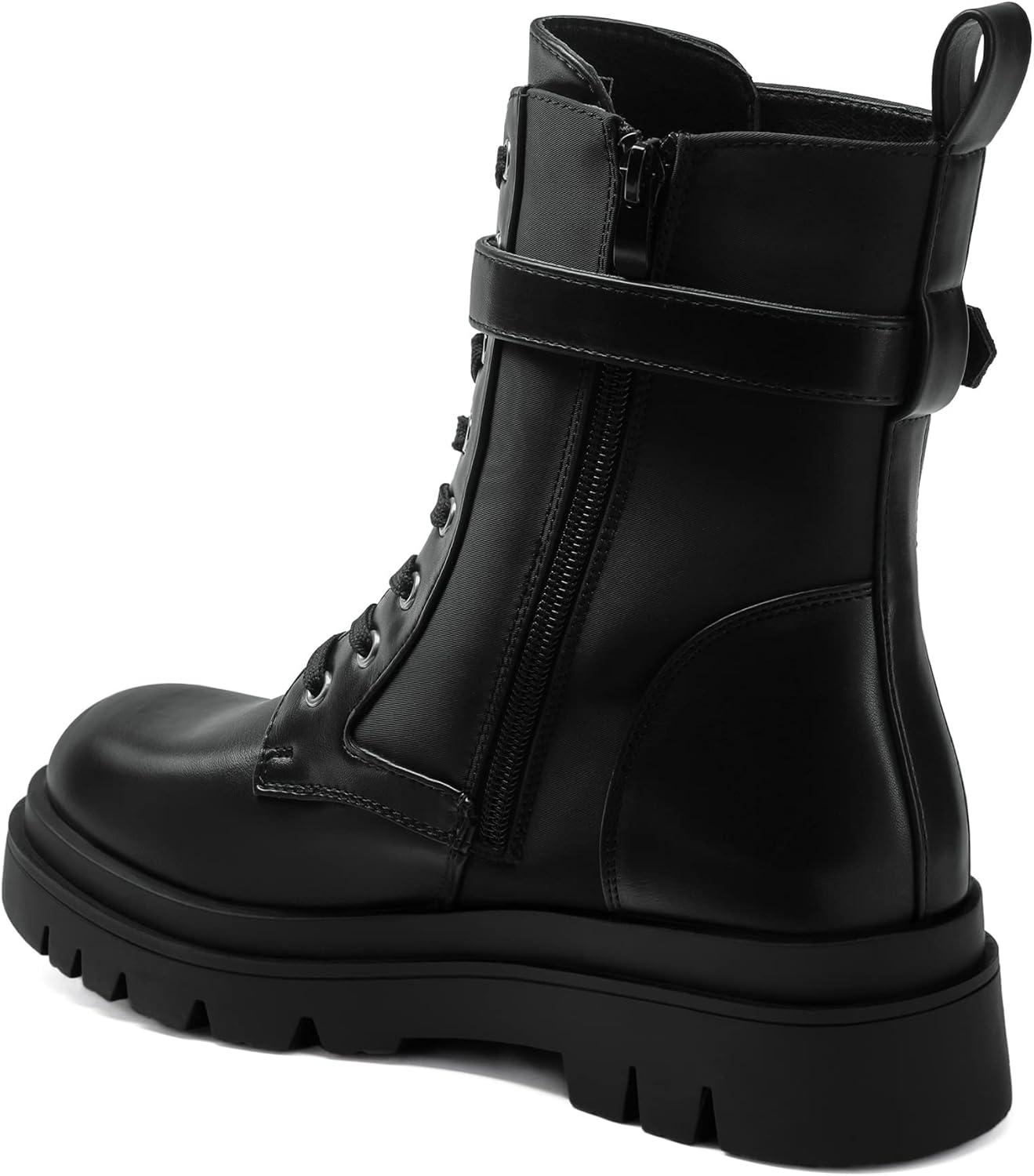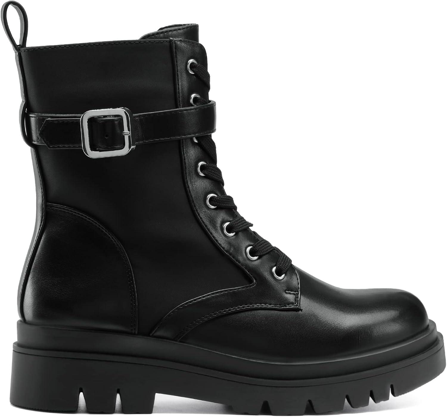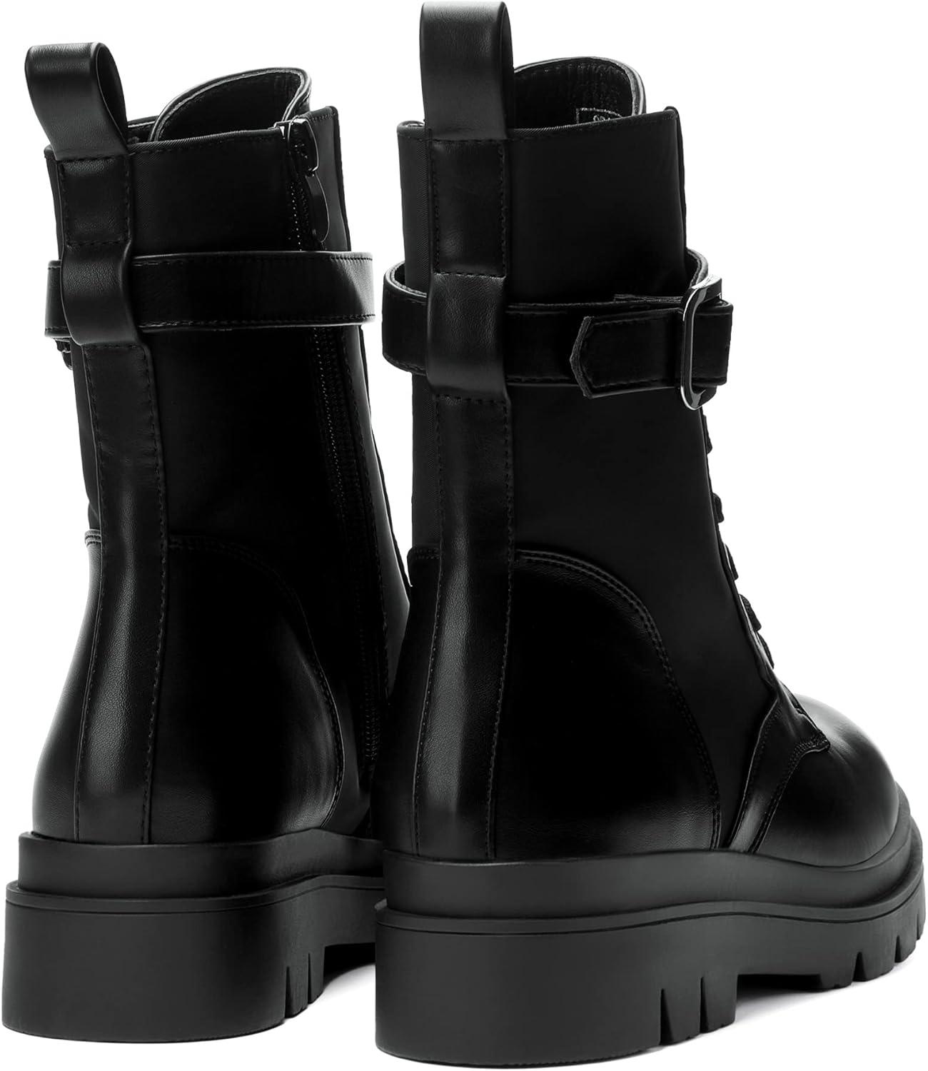 DREAM PAIRS Women’s Combat Platform Boots Lace Up Lug Sole Buckle Ankle Booties Shoes(Black-pu)