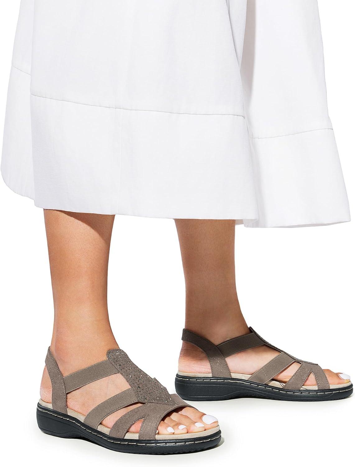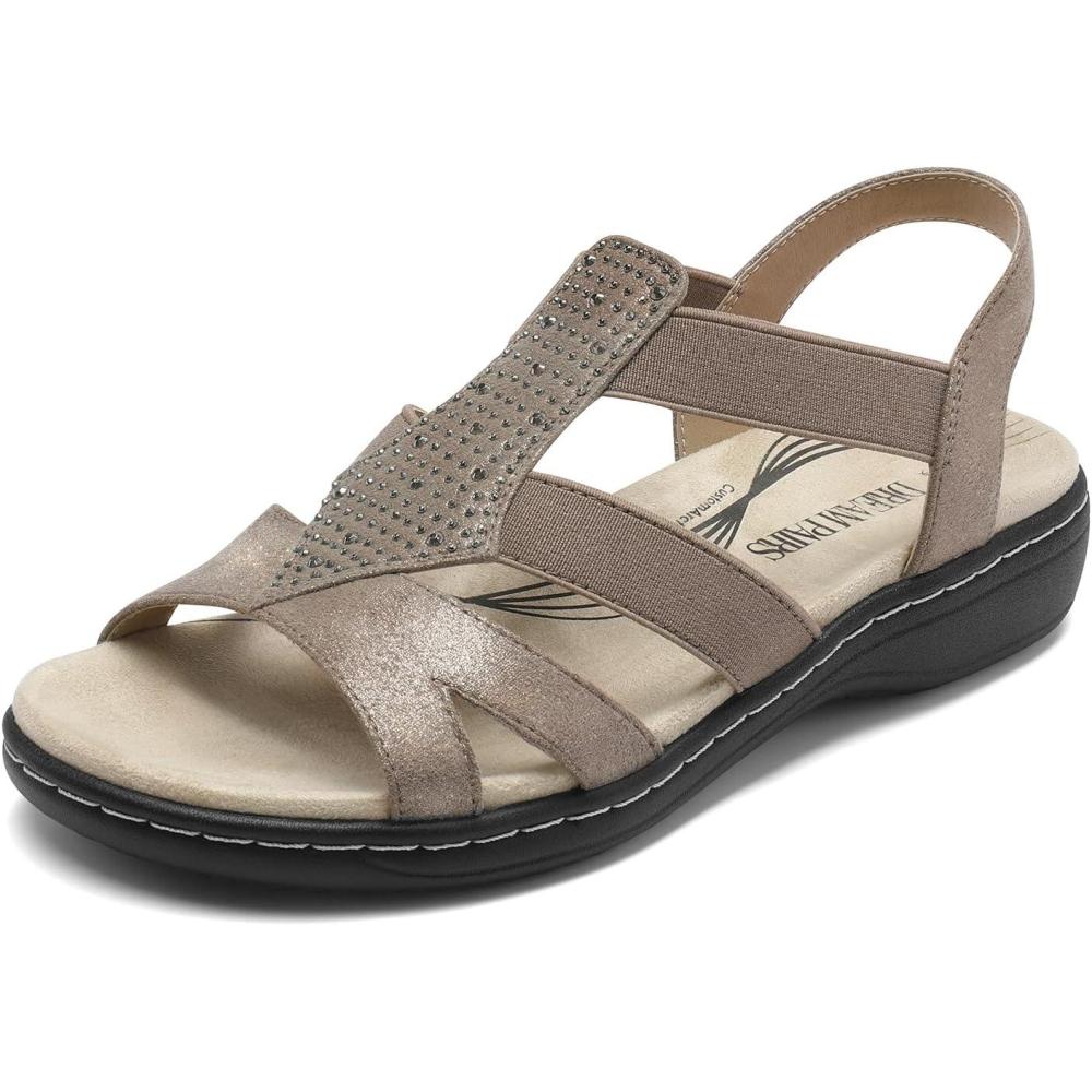 DREAM PAIRS Women’s Comfortable Arch Support Dressy Flat Sandals Elastic Open Toe Walking Shoes for Summer(Bronze)