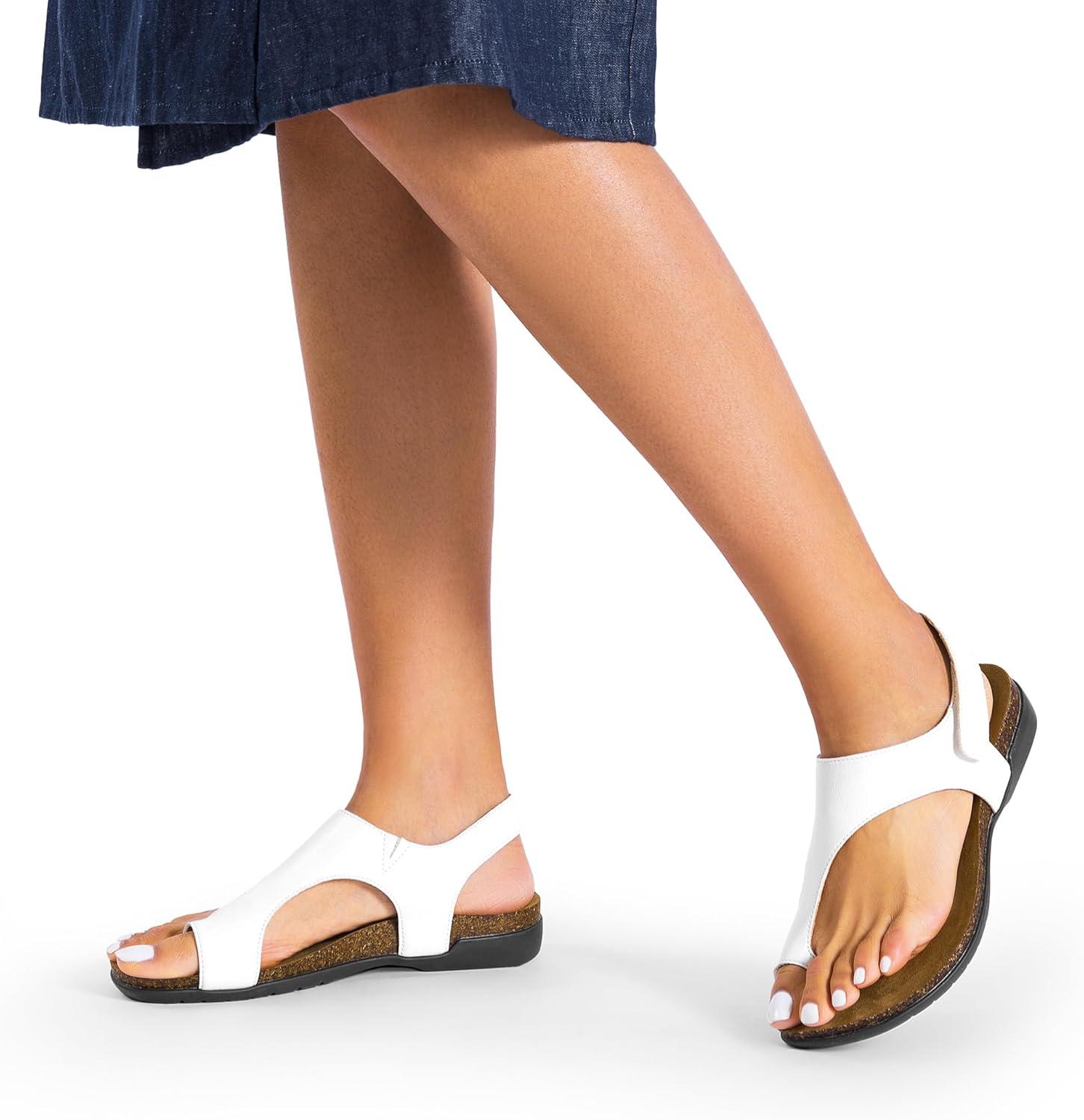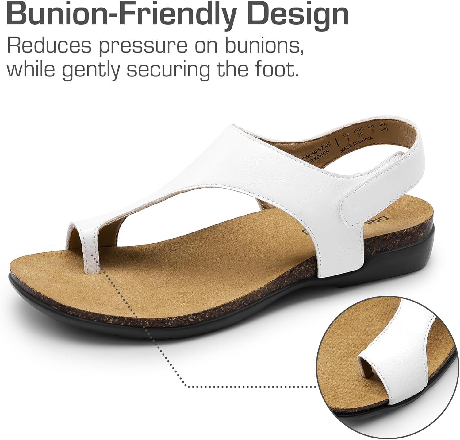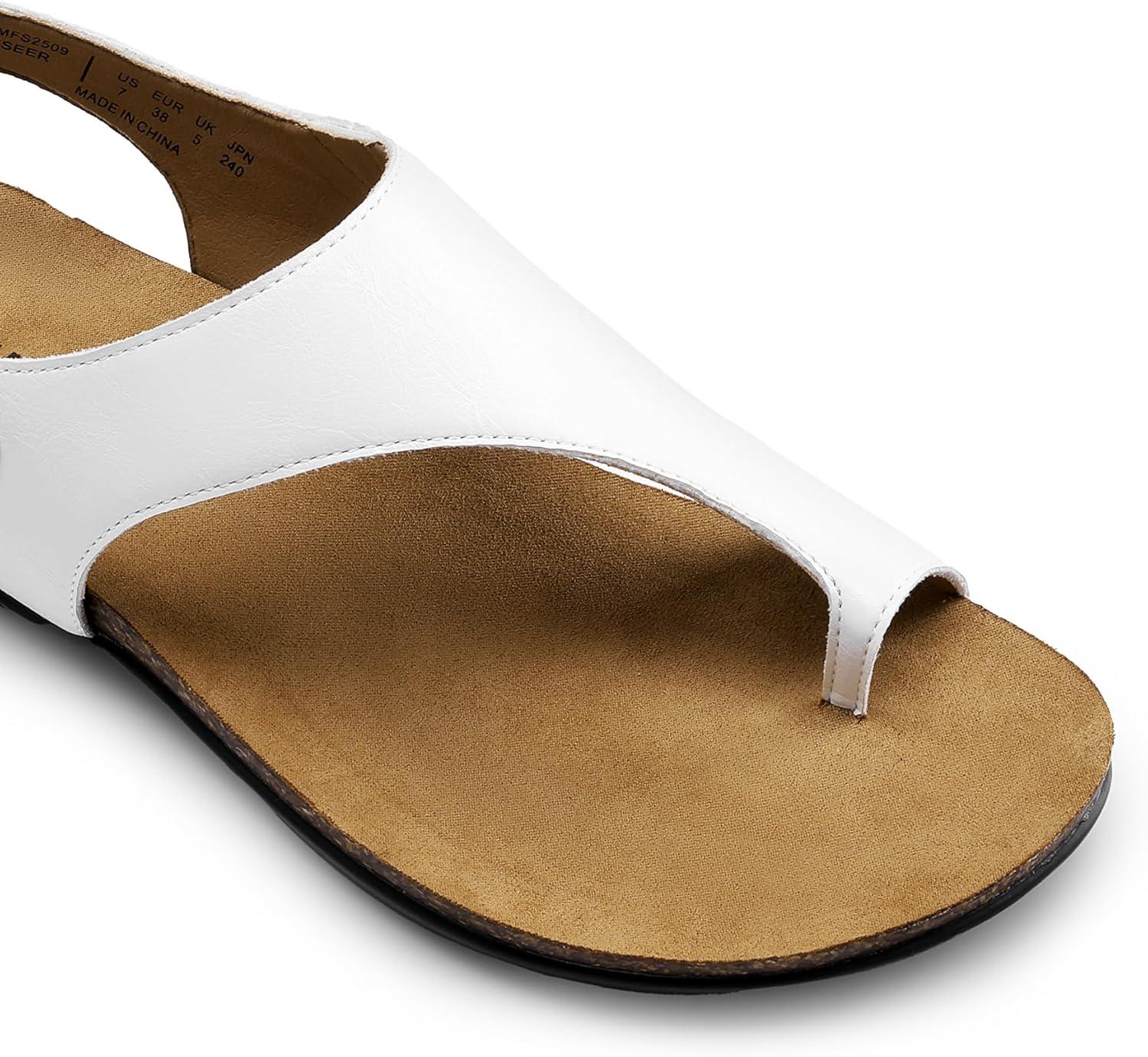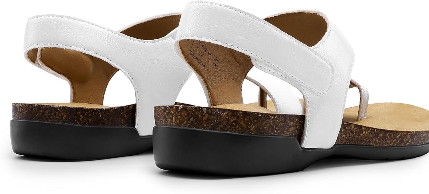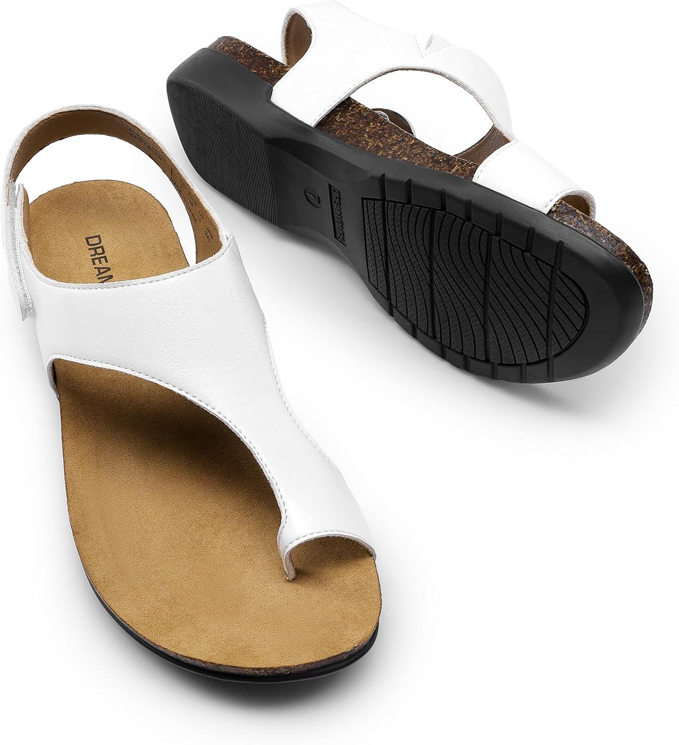 DREAM PAIRS Women’s Comfortable Cork Footbed Arch Support Sandals Casual to Dressy Thong Walking Flat Sandals for Summer(White)