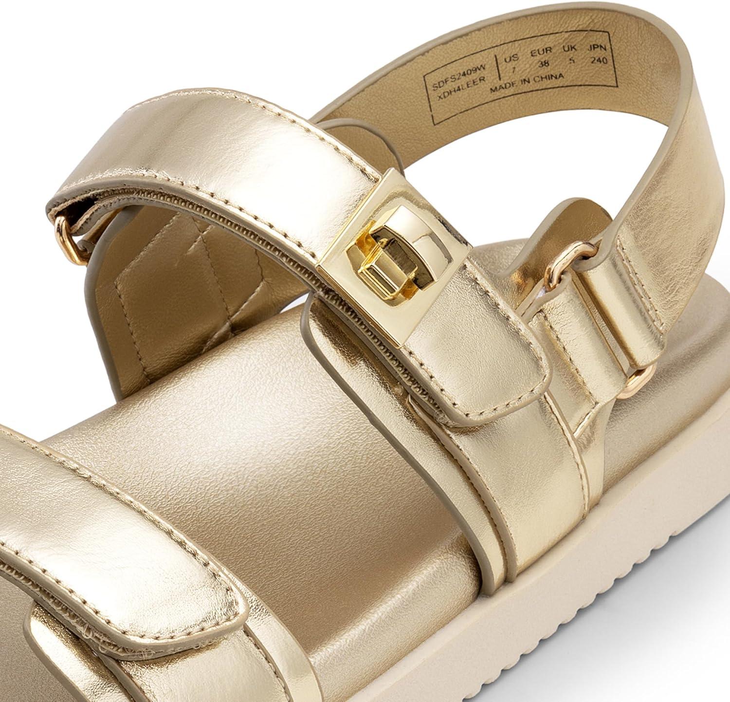 DREAM PAIRS Women’s Comfortable Open Toe Flat Sandals Fashion One Band Summer Dessy Sandals(Gold-metallic)