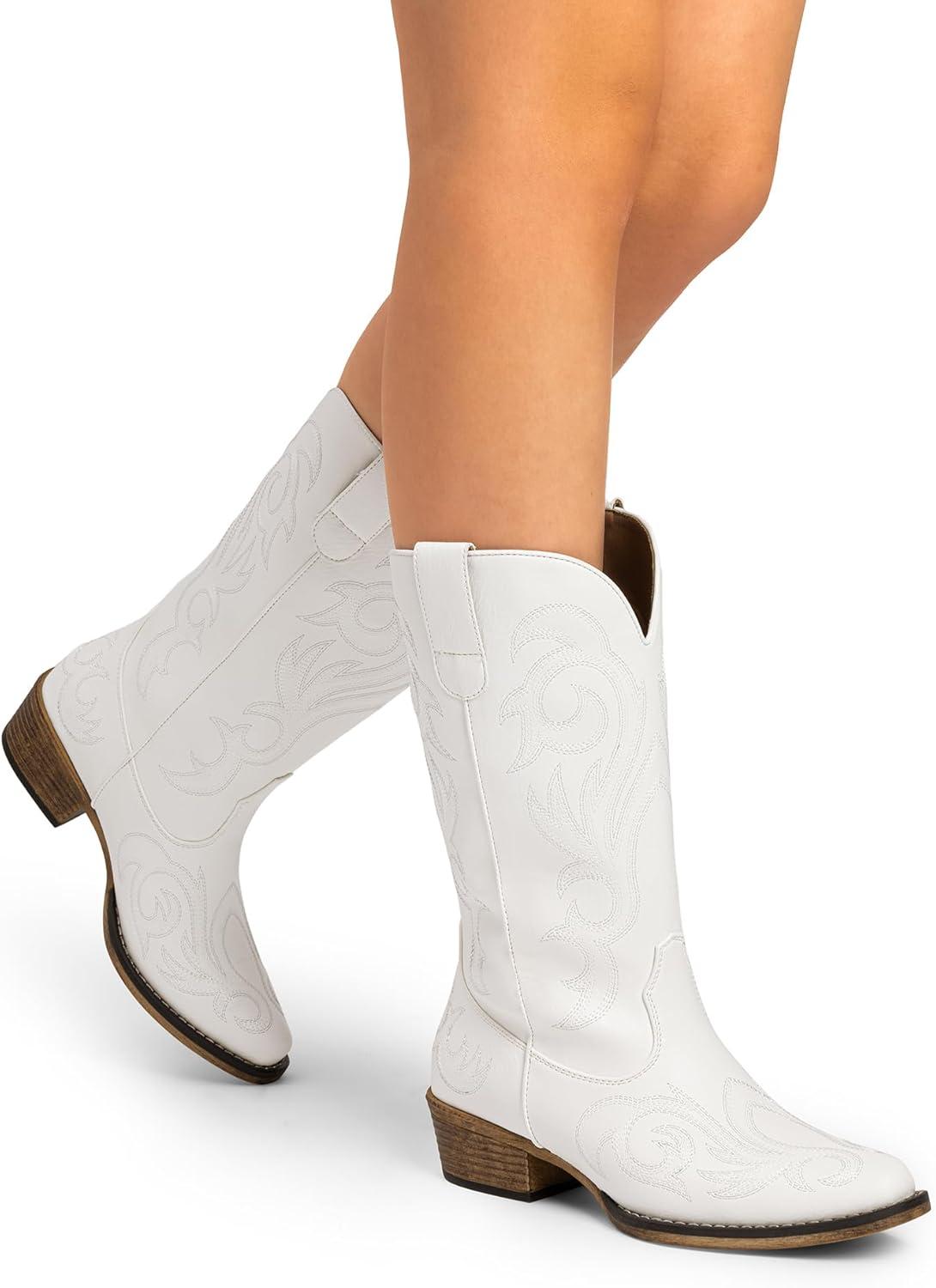 Get your hands on our newest DREAM PAIRS Women’s Cowboy Boots Mid Calf Cowgirl Boots Square Toe Chunky Heel Embroidery Stitched Western Boots(White) and enjoy a limited-time discount offer.