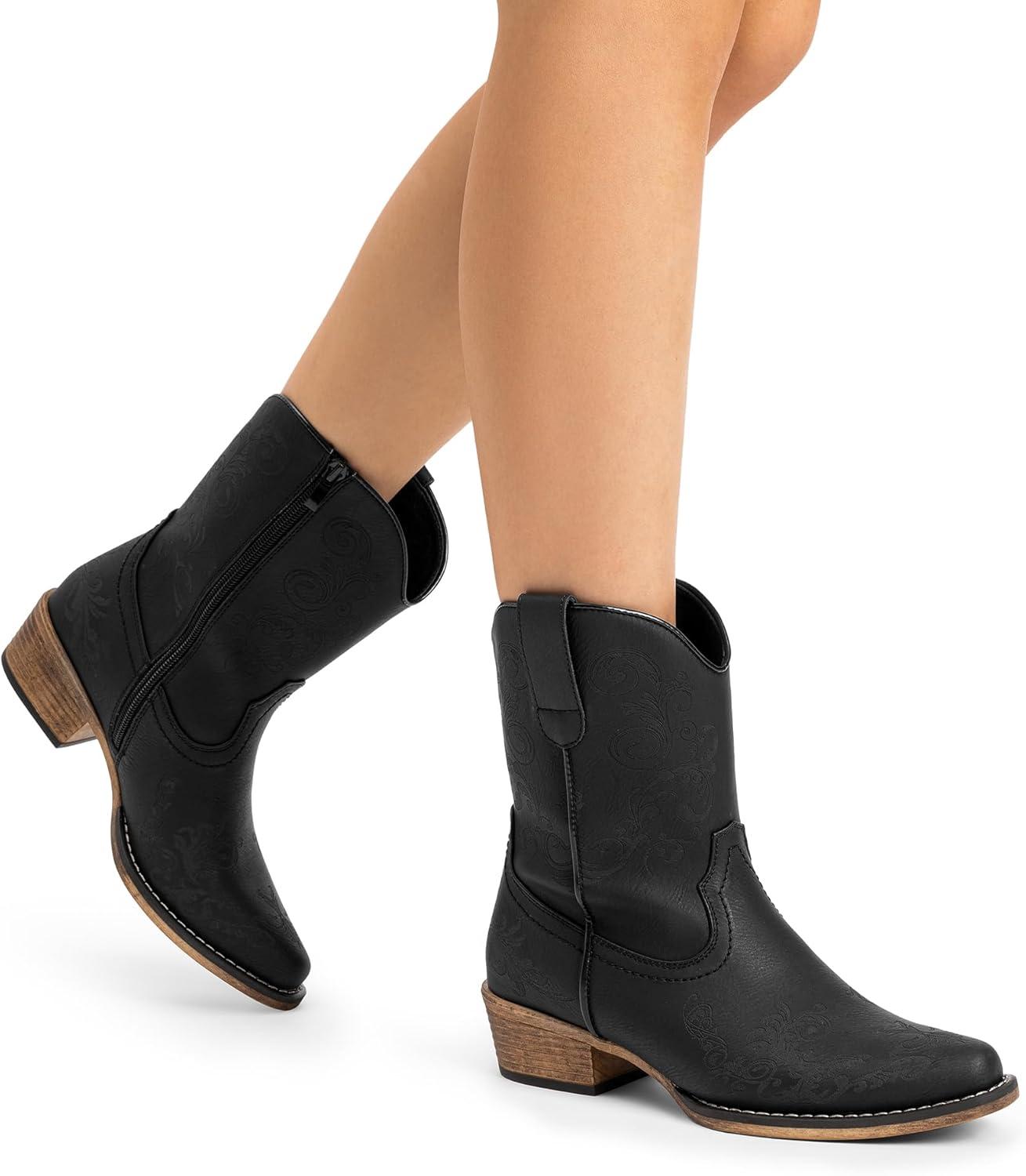 DREAM PAIRS Women’s Cowboy Cowgirl Western Ankle Boots Low Chunky Heels Square Toe Fall Short Booties Shoes(Black)