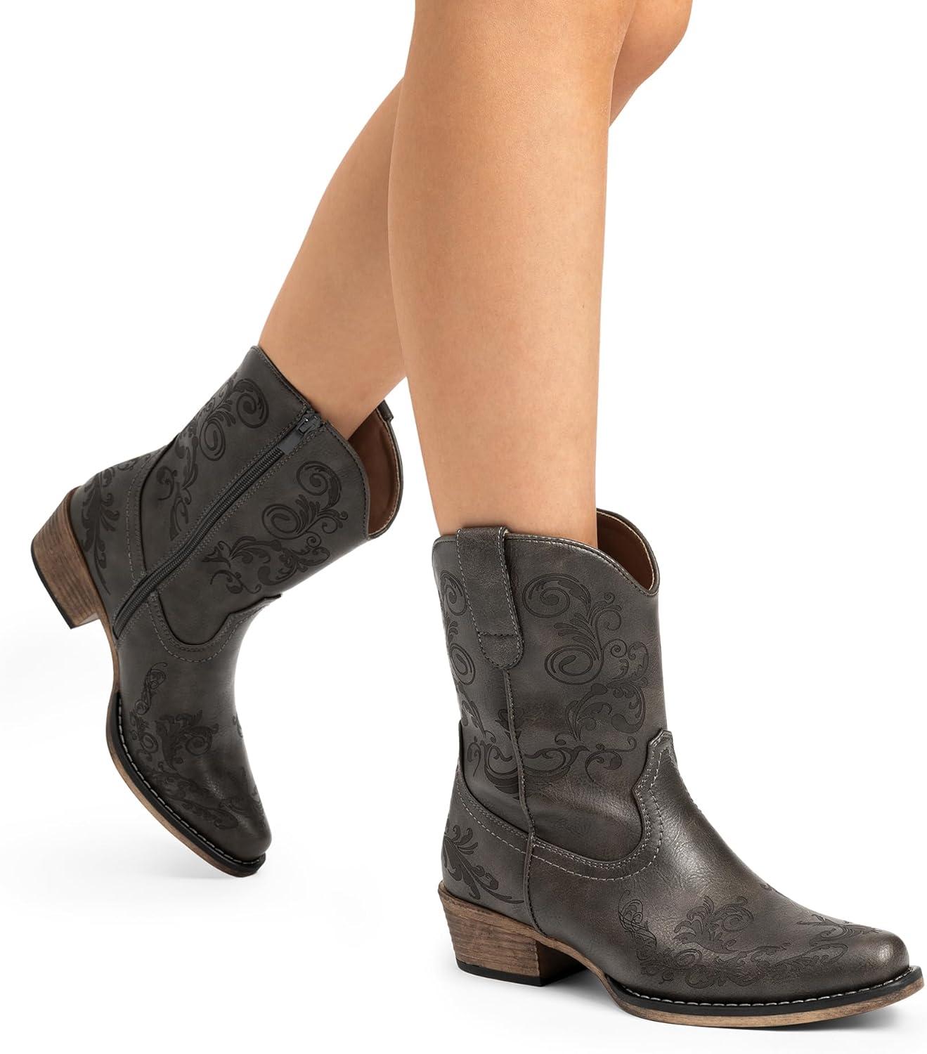 Get more for your money with our exclusive bundle deals on DREAM PAIRS Women’s Cowboy Cowgirl Western Ankle Boots Low Chunky Heels Square Toe Fall Short Booties Shoes(Grey) and accessories.