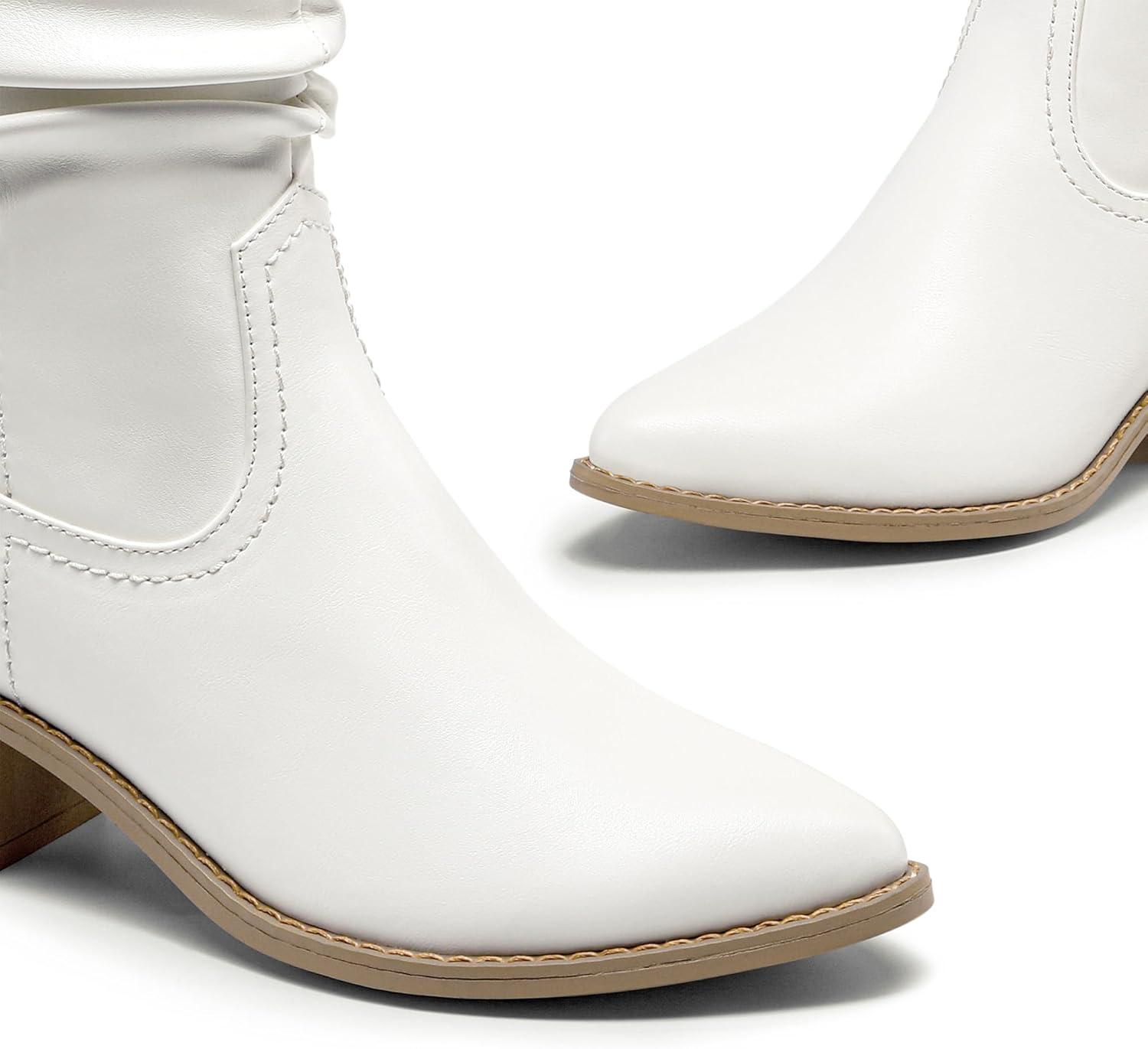 DREAM PAIRS Women’s Cowgirl Boots, Mid Calf Western Cowboy Chunky Heel Boots, Slouchy & Pull-on Ankle Booties for women(White)