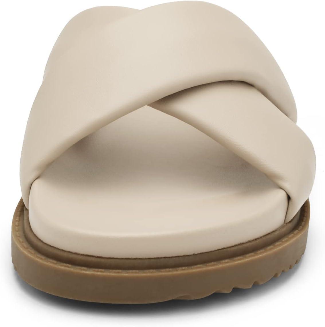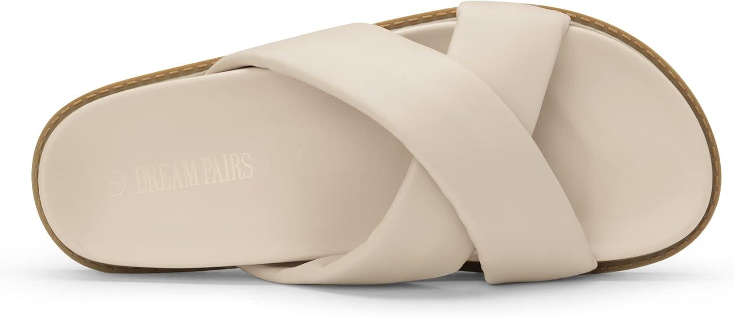 DREAM PAIRS Women’s Crisscross Open Toe Slide Sandals Flat Comfort Slip on Sandals(Beige White)