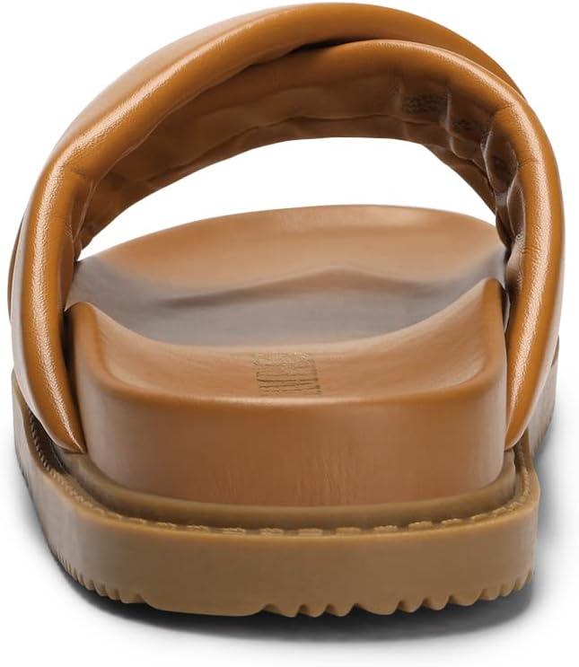 DREAM PAIRS Women’s Crisscross Open Toe Slide Sandals Flat Comfort Slip on Sandals(Brown)