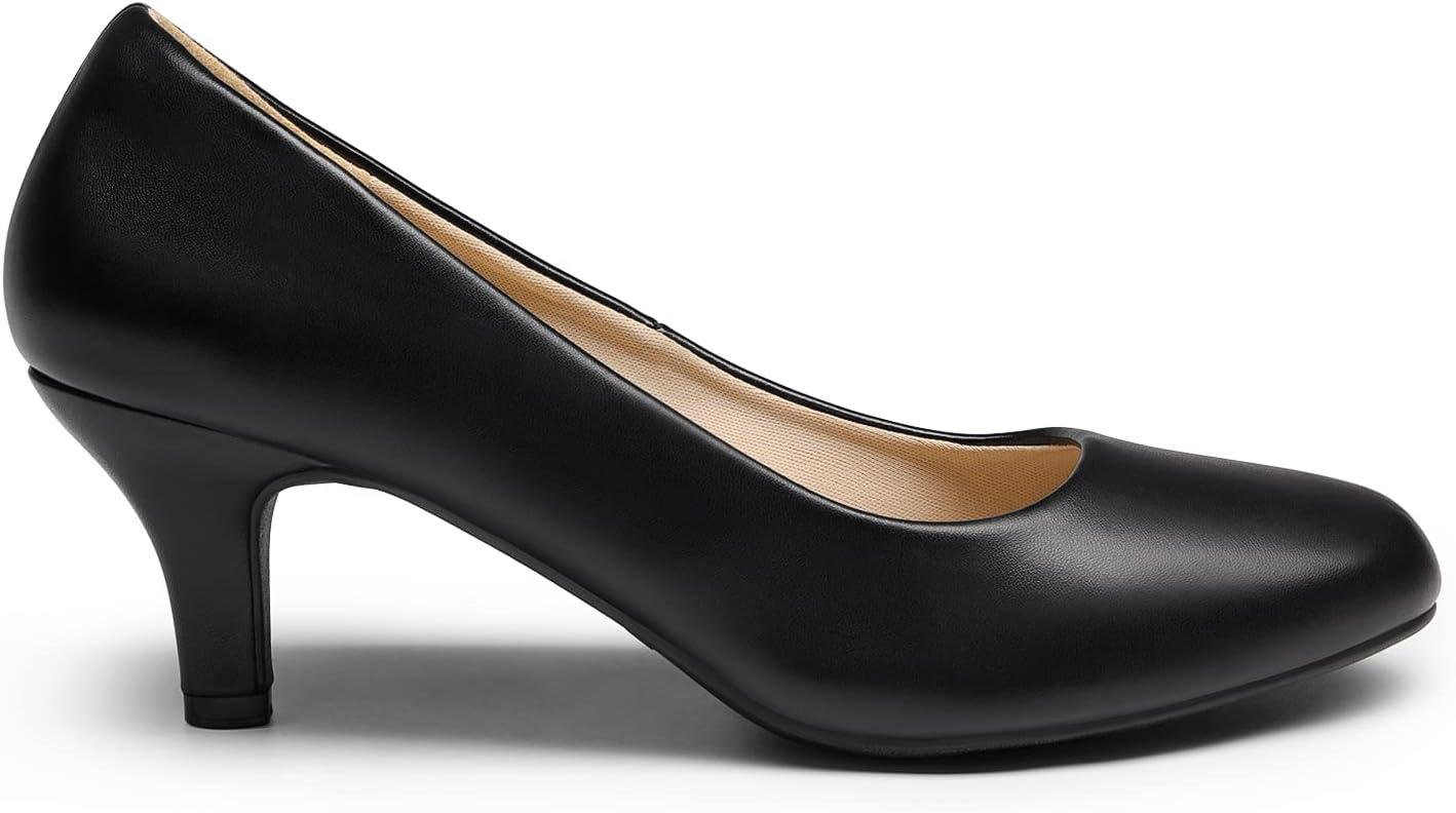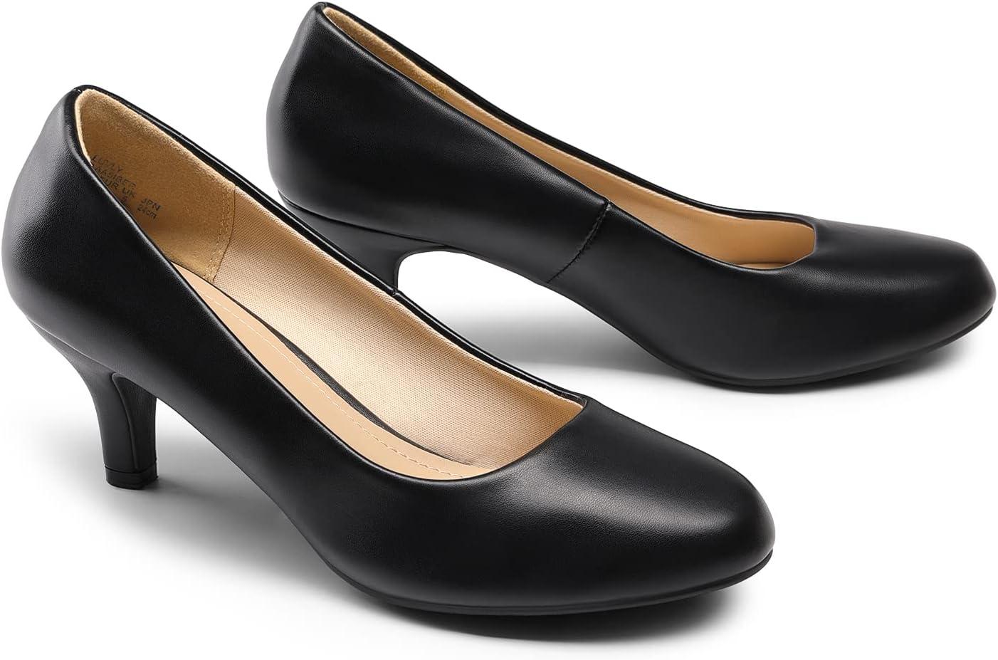 DREAM PAIRS Women’s Dress Comfortable Low Heel Pump Shoes(Black-pu)