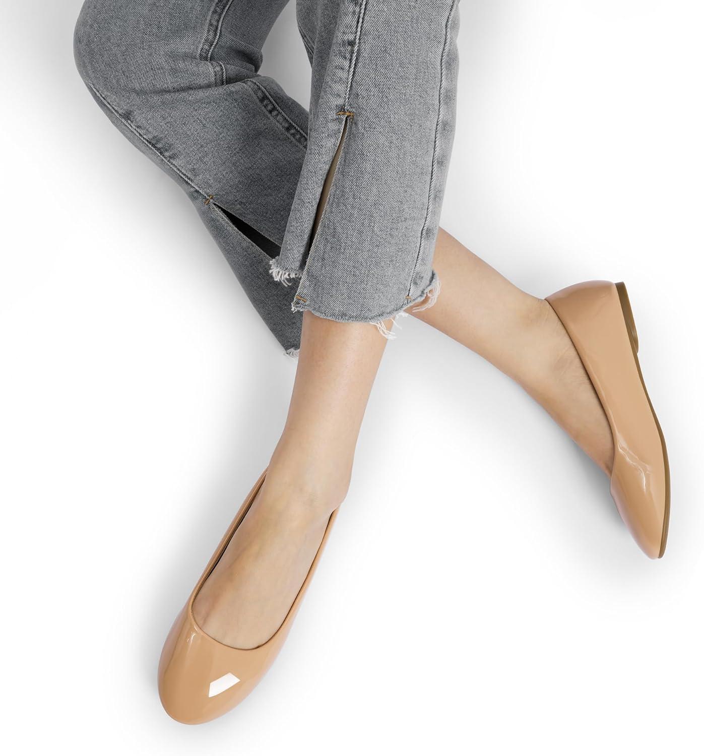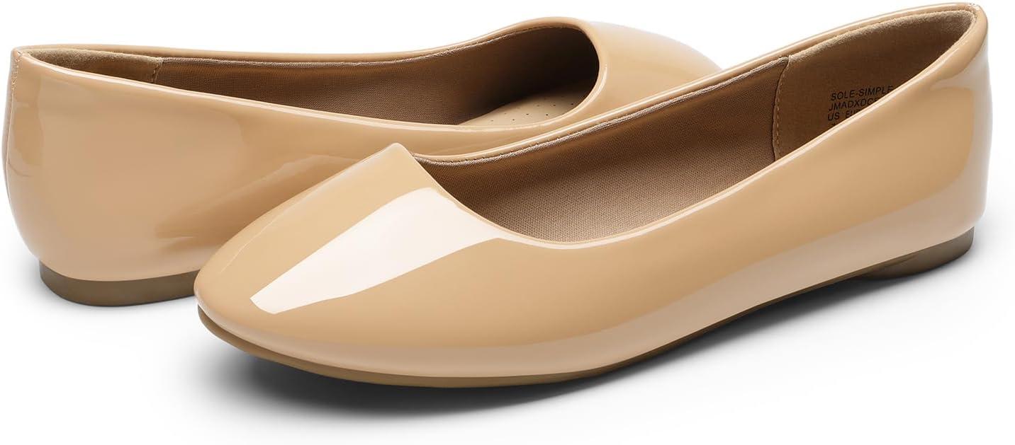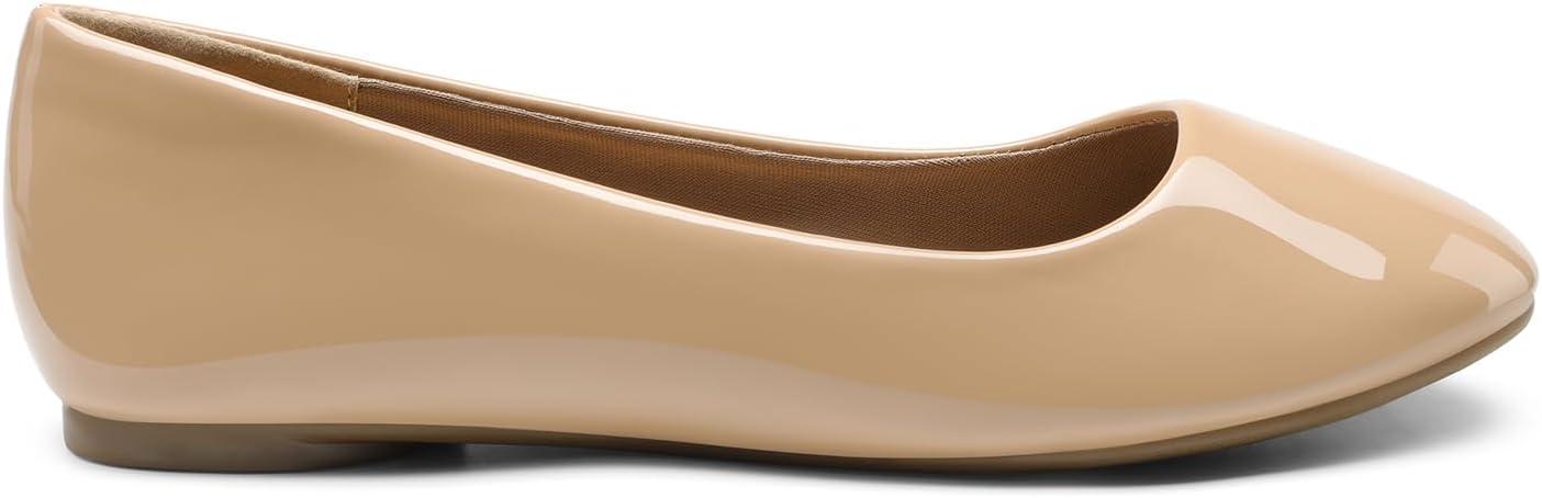 DREAM PAIRS Women’s Dress Pointed Toe Flats Ballet Comfort Soft Slip On Casual Flat Shoes for Work Office Business(Nude-pat-1)