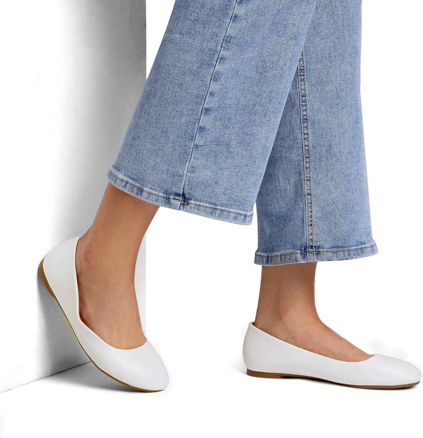 DREAM PAIRS Women’s Dress Pointed Toe Flats Ballet Comfort Soft Slip On Casual Flat Shoes for Work Office Business(White)
