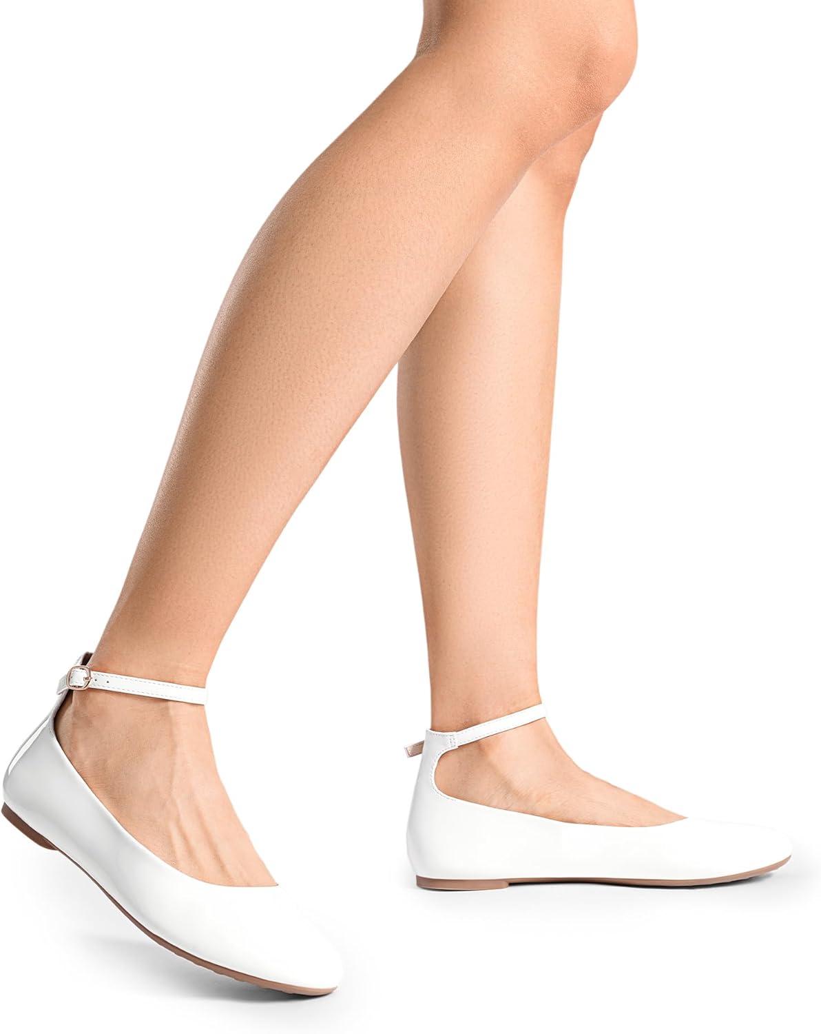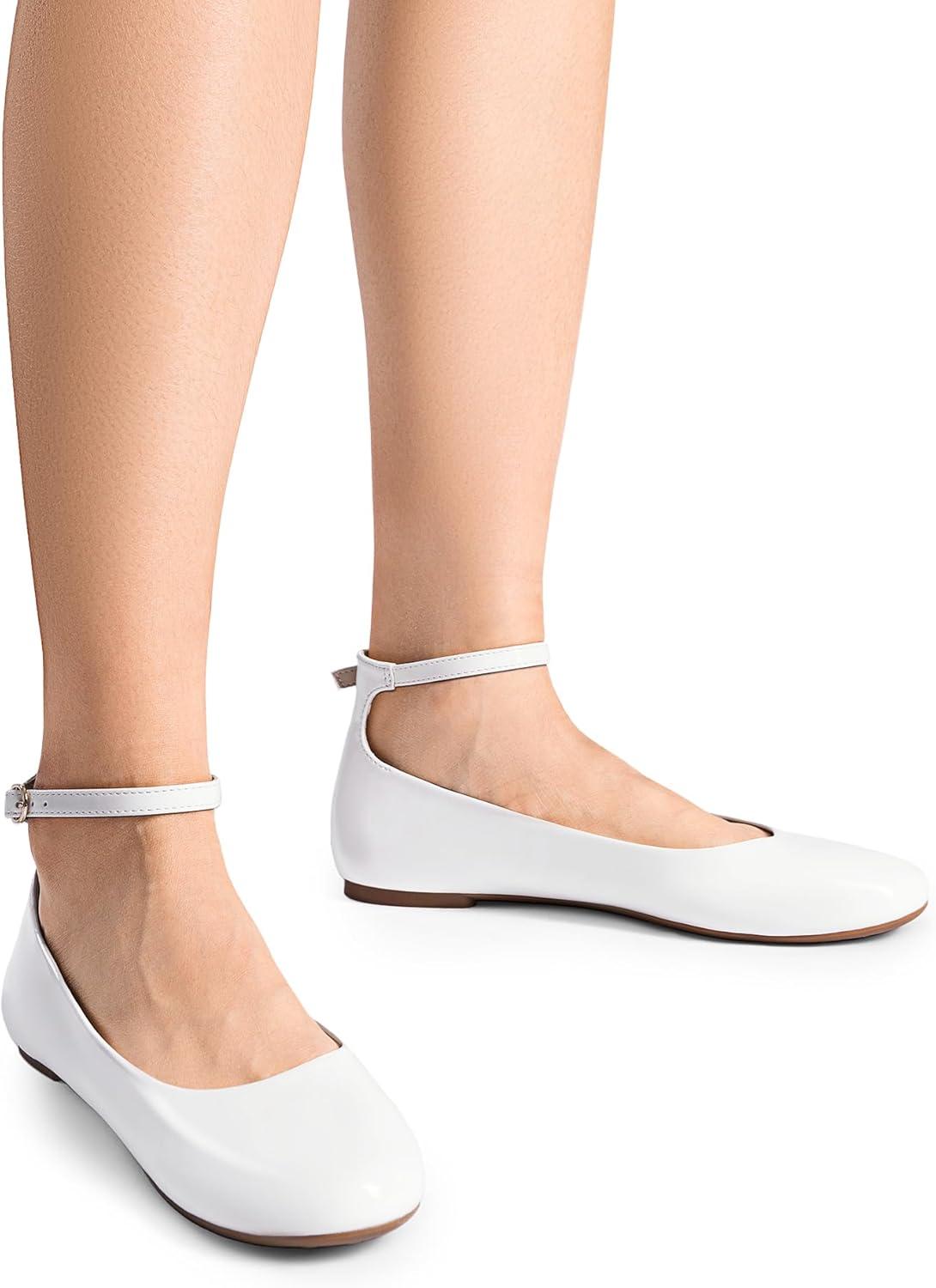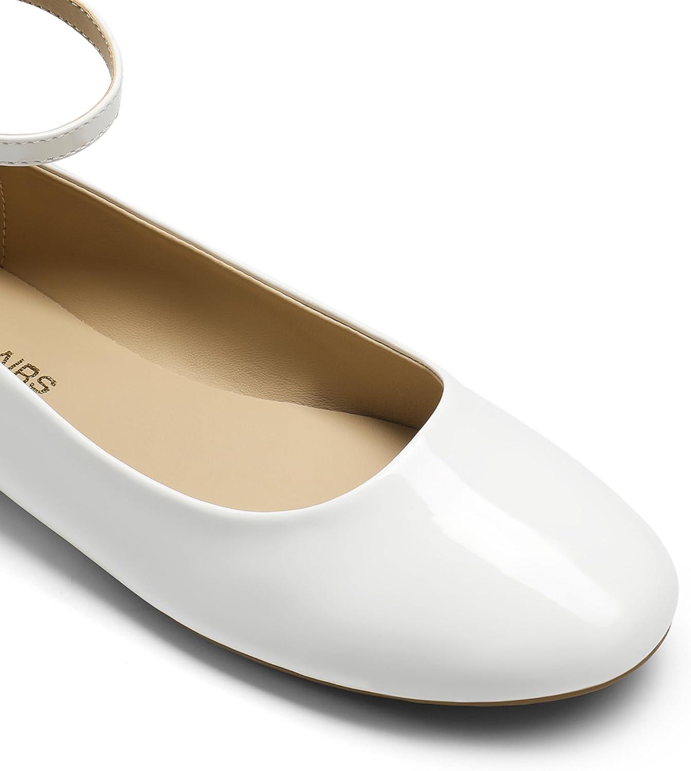 DREAM PAIRS Women’s Dressy Ballet Flats Shoes Round Toe Comfortable Ankle Strap Patent Ballerina Flats Shoes(White)