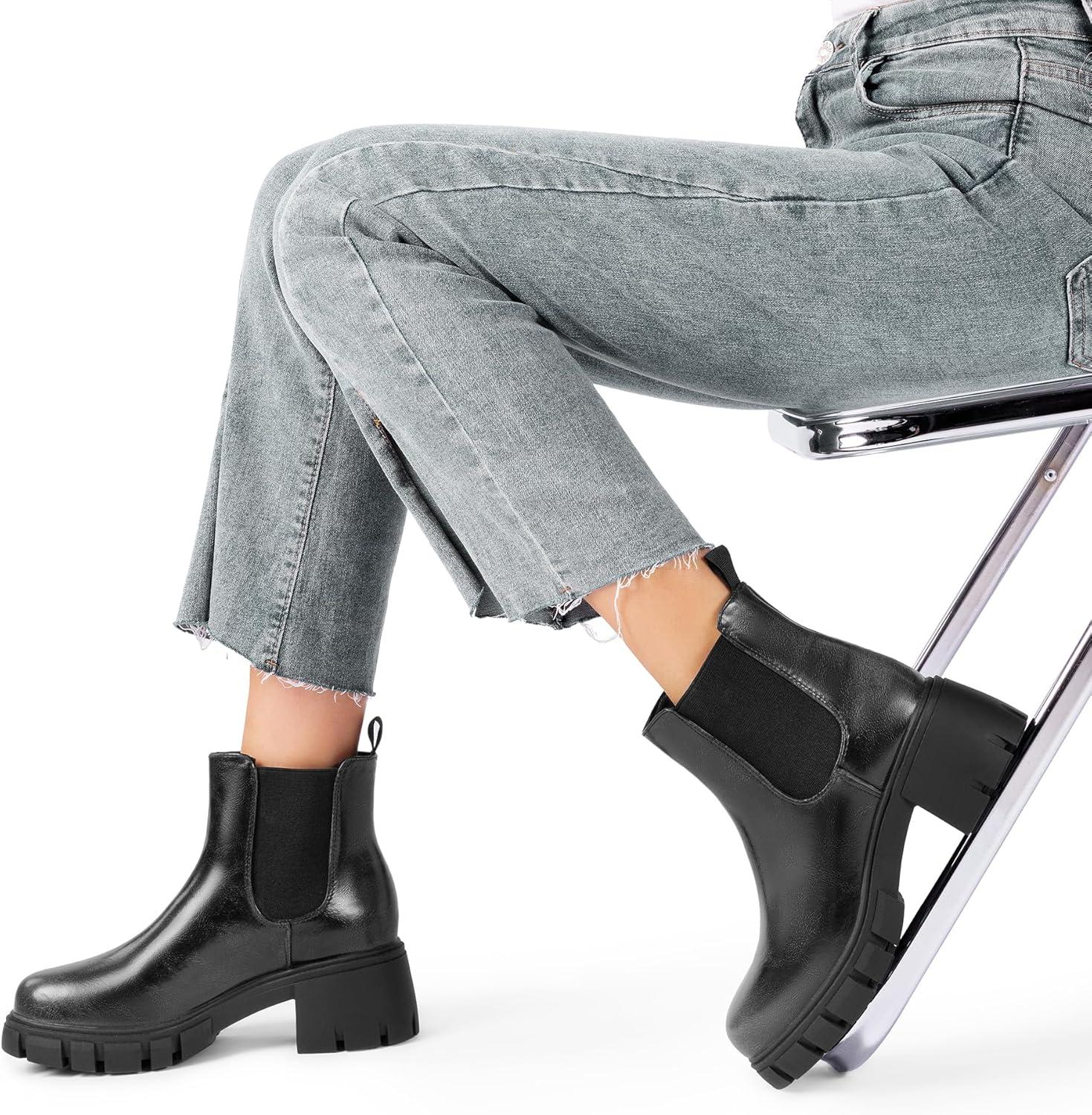 DREAM PAIRS Women’s Elastic Chelsea Ankle Boots Platform Low Chunky Block Heel Lug Sole Slip on Fall Heeled Booties Shoes(Black/Silver)