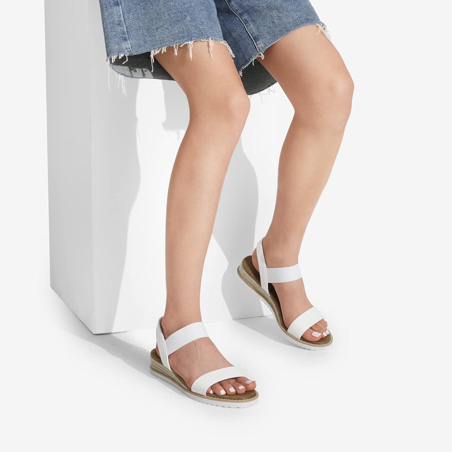 DREAM PAIRS Womens Espadrilles Ankle Stretch Elastic Strap Open Toe Wedges Flats Sandals(White)