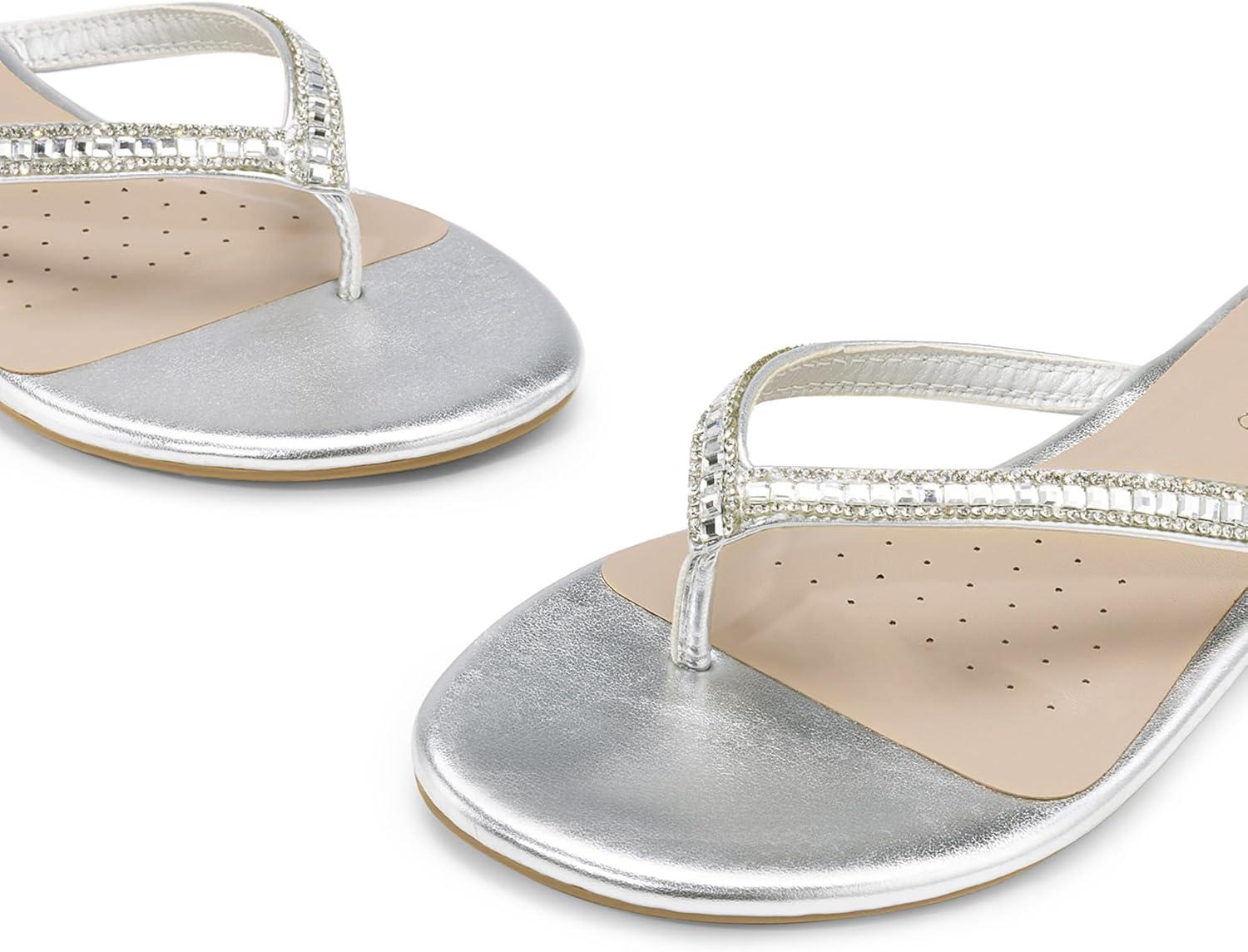 DREAM PAIRS Women’s Fashion Rhinestones Design Slides Sandals Dress Daily Flat Sandals for Summer(Silver Glitter)
