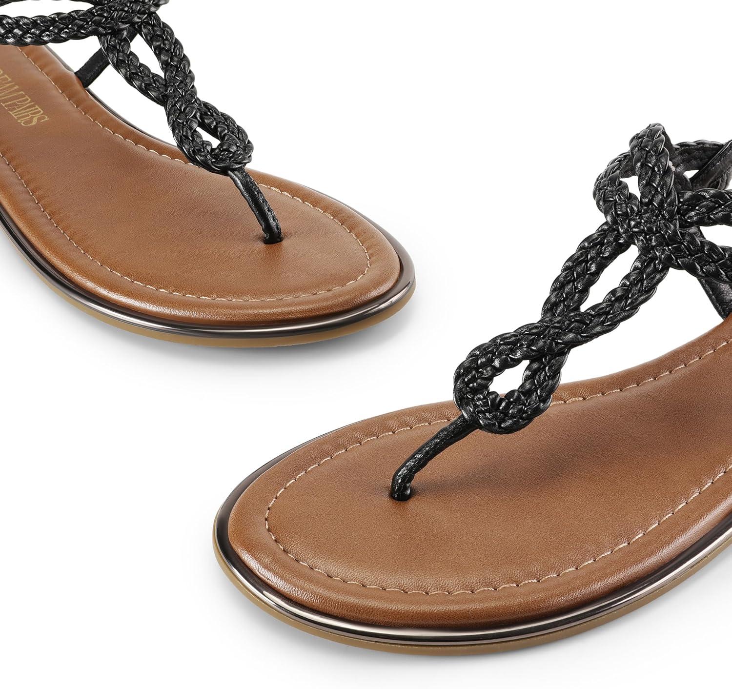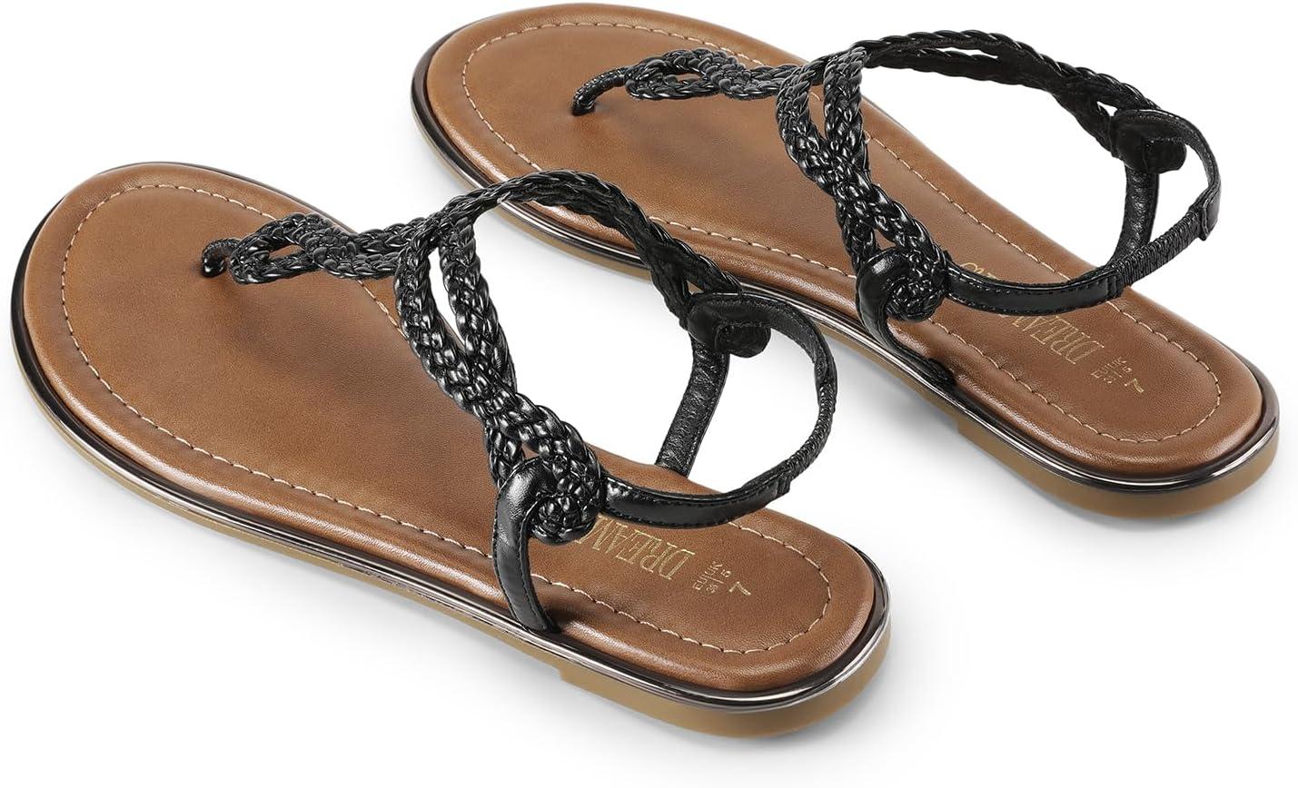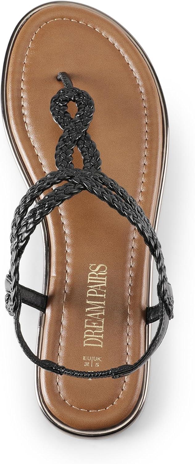 DREAM PAIRS Women’s Flat Sandals Dressy Summer Stappy Comfortable Ankle Elastic T-Strap Beach Thong Sandals(Black)