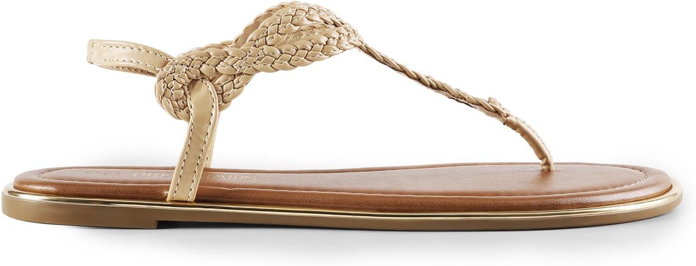 DREAM PAIRS Women’s Flat Sandals Dressy Summer Stappy Comfortable Ankle Elastic T-Strap Beach Thong Sandals(Nude)